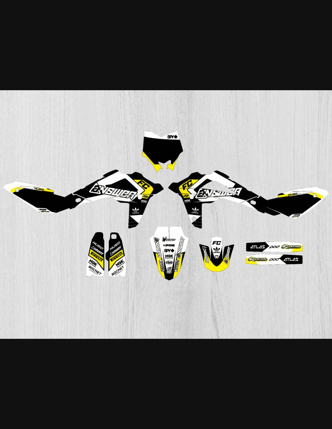 The stickers we produce are made of first quality crystal materials that will be adapted easily and perfectly on the plastics of the motorcycle of the customer. The resistance of the material allows our graphic to stay perfectly sticked also during the most difficult usage conditions of the motorcycle. The installation, thanks to the channels for air discharge lets you install the stickers smoothly and without bubbles. We use last generation machineries for the printing, so we can print bright colors and high qualities shades. We include a protective layer on the stickers, so they will be always bright during the years and are protected against water and dirt. It is possible to customize the stickers as you prefer. You can add, remove or change technician sponsors, add a custom race number or your own name. You can indicate all changes in the field “Product customization” on the website during the purchase. We are not limited only to the graphics on our website, you can send us by email or WhatsApp a picture of a design we don’t have, so we can make you a quotation and then make it. Through the purchase, you accept the sales conditions.