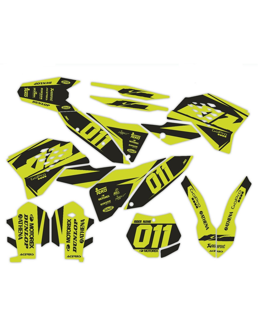The stickers we produce are made of first quality crystal materials that will be adapted easily and perfectly on the plastics of the motorcycle of the customer. The resistance of the material allows our graphic to stay perfectly sticked also during the most difficult usage conditions of the motorcycle. The installation, thanks to the channels for air discharge lets you install the stickers smoothly and without bubbles. We use last generation machineries for the printing, so we can print bright colors and high qualities shades. We include a protective layer on the stickers, so they will be always bright during the years and are protected against water and dirt. It is possible to customize the stickers as you prefer. You can add, remove or change technician sponsors, add a custom race number or your own name. You can indicate all changes in the field “Product customization” on the website during the purchase. We are not limited only to the graphics on our website, you can send us by email or WhatsApp a picture of a design we don’t have, so we can make you a quotation and then make it. Through the purchase, you accept the sales conditions.