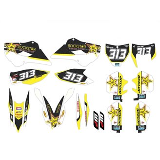 The stickers we produce are made of first quality crystal materials that will be adapted easily and perfectly on the plastics of the motorcycle of the customer. The resistance of the material allows our graphic to stay perfectly sticked also during the most difficult usage conditions of the motorcycle. The installation, thanks to the channels for air discharge lets you install the stickers smoothly and without bubbles. We use last generation machineries for the printing, so we can print bright colors and high qualities shades. We include a protective layer on the stickers, so they will be always bright during the years and are protected against water and dirt. It is possible to customize the stickers as you prefer. You can add, remove or change technician sponsors, add a custom race number or your own name. You can indicate all changes in the field “Product customization” on the website during the purchase. We are not limited only to the graphics on our website, you can send us by email or WhatsApp a picture of a design we don’t have, so we can make you a quotation and then make it. Through the purchase, you accept the sales conditions.