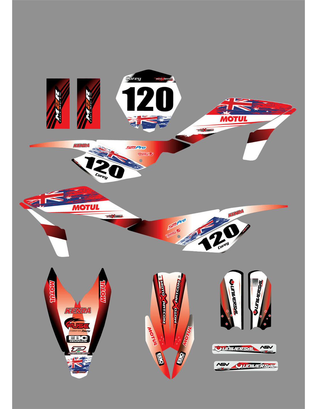The stickers we produce are made of first quality crystal materials that will be adapted easily and perfectly on the plastics of the motorcycle of the customer. The resistance of the material allows our graphic to stay perfectly sticked also during the most difficult usage conditions of the motorcycle. The installation, thanks to the channels for air discharge lets you install the stickers smoothly and without bubbles. We use last generation machineries for the printing, so we can print bright colors and high qualities shades. We include a protective layer on the stickers, so they will be always bright during the years and are protected against water and dirt. It is possible to customize the stickers as you prefer. You can add, remove or change technician sponsors, add a custom race number or your own name. You can indicate all changes in the field “Product customization” on the website during the purchase. We are not limited only to the graphics on our website, you can send us by email or WhatsApp a picture of a design we don’t have, so we can make you a quotation and then make it. Through the purchase, you accept the sales conditions.