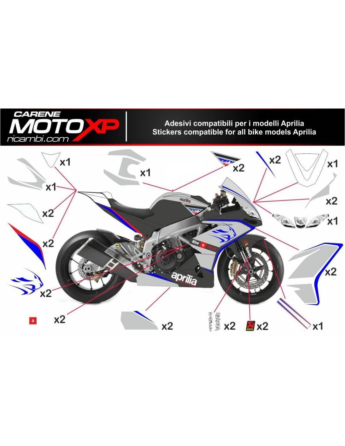 Kit adesivi compatibile con Aprilia RSV4 2009 - 2014 - MXPKAD8024
