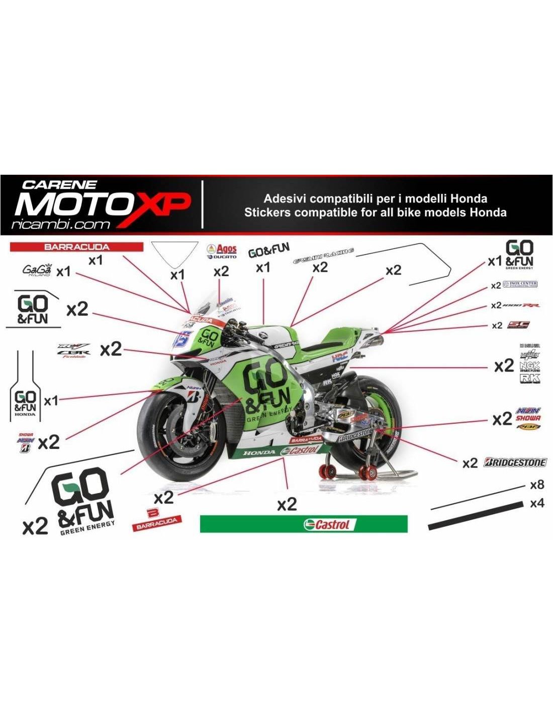 Gli adesivi sono realizzati con materiali di prima qualità e vengono dimensionati per il tipo di moto indicata al momento dell’acquisto. Il kit è composto di tutti gli adesivi non originali, per completare la grafica scelta: per cupolino, carena destra e sinistra, serbatoio, puntale destro sinistro, codino, forcellone e parafango anteriore. Gli adesivi si possono anche personalizzare (colore, numeri nomi o altro) scrivete tutto prima di aggiungere al carrello nello spazio “ulteriori informazioni”. Il costo del kit adesivi non varia, eccetto sostanziali modifiche ad esso (es. colori fluorescenti). Con l’acquisto, si accettano le condizioni di vendita.Si possono attaccare sia sopra che sotto trasparente. Salvo diversa richiesta del cliente, il kit viene fornito con la protezione applicata.