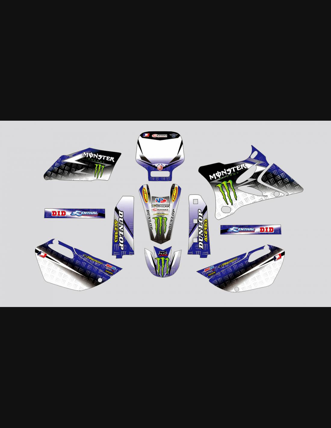 Gli adesivi sono realizzati con materiali crystal di prima qualità che permettono di adattarsi facilmente e perfettamente alle plastiche della moto del cliente. La resistenza del materiale permette alle nostre grafiche di rimanere correttamente incollate anche durante le più difficili condizioni di uso della moto. Il montaggio, grazie ai canali per lo scarico dell’aria, consente di installare agevolmente il prodotto e senza bolle. Utilizziamo macchinari di ultima generazione per la stampa, permettendo di stampare colori brillanti e sfumature in alta definizione. Sugli adesivi includiamo uno strato protettivo che riesce a mantenerli sempre lucenti nel corso degli anni, preservandoli anche da acqua e sporco. È possibile personalizzare il kit adesivi a proprio piacimento. Si possono aggiungere, togliere o sostituire sponsor tecnici, inserire un numero da gara personalizzato o il proprio nome. Si possono indicare tutte le modifiche nell’apposito spazio “Personalizzazione del prodotto” al momento dell’acquisto. Non ci limitiamo solo alle grafiche presenti sul nostro sito, inviandoci tramite mail o WhatsApp la foto di una grafica che non abbiamo, potremo farvi un preventivo e successivamente realizzarla. Con l’acquisto, si accettano le condizioni di vendita.