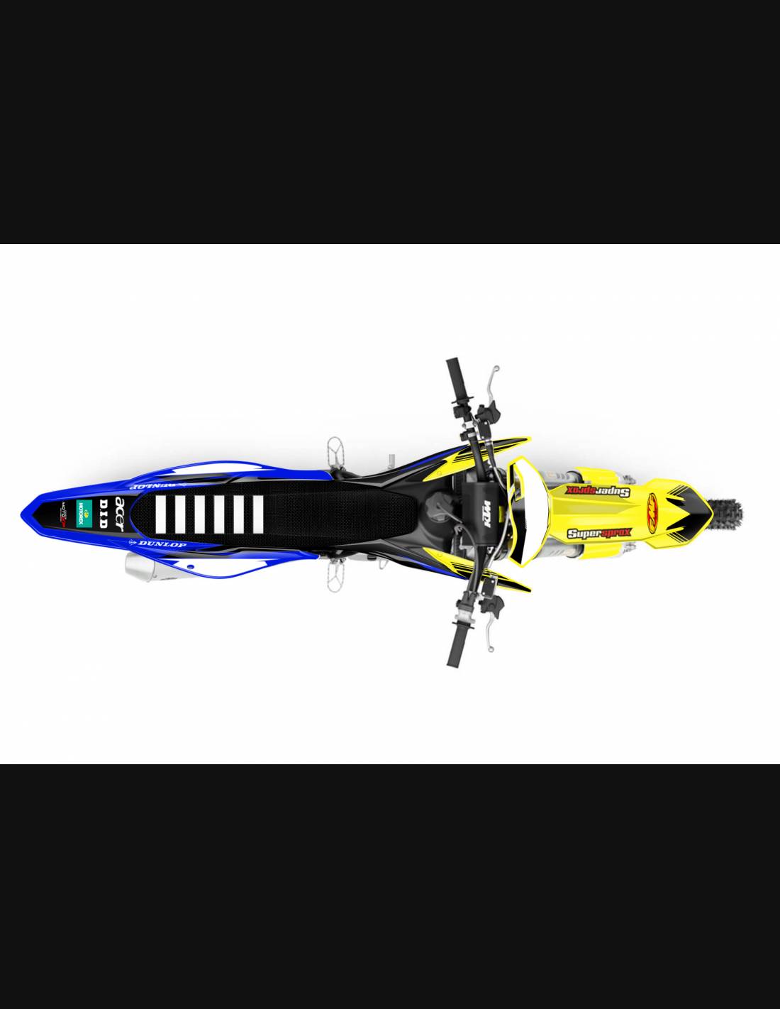Gli adesivi sono realizzati con materiali crystal di prima qualità che permettono di adattarsi facilmente e perfettamente alle plastiche della moto del cliente. La resistenza del materiale permette alle nostre grafiche di rimanere correttamente incollate anche durante le più difficili condizioni di uso della moto. Il montaggio, grazie ai canali per lo scarico dell’aria, consente di installare agevolmente il prodotto e senza bolle. Utilizziamo macchinari di ultima generazione per la stampa, permettendo di stampare colori brillanti e sfumature in alta definizione. Sugli adesivi includiamo uno strato protettivo che riesce a mantenerli sempre lucenti nel corso degli anni, preservandoli anche da acqua e sporco. È possibile personalizzare il kit adesivi a proprio piacimento. Si possono aggiungere, togliere o sostituire sponsor tecnici, inserire un numero da gara personalizzato o il proprio nome. Si possono indicare tutte le modifiche nell’apposito spazio “Personalizzazione del prodotto” al momento dell’acquisto. Non ci limitiamo solo alle grafiche presenti sul nostro sito, inviandoci tramite mail o WhatsApp la foto di una grafica che non abbiamo, potremo farvi un preventivo e successivamente realizzarla. Con l’acquisto, si accettano le condizioni di vendita.