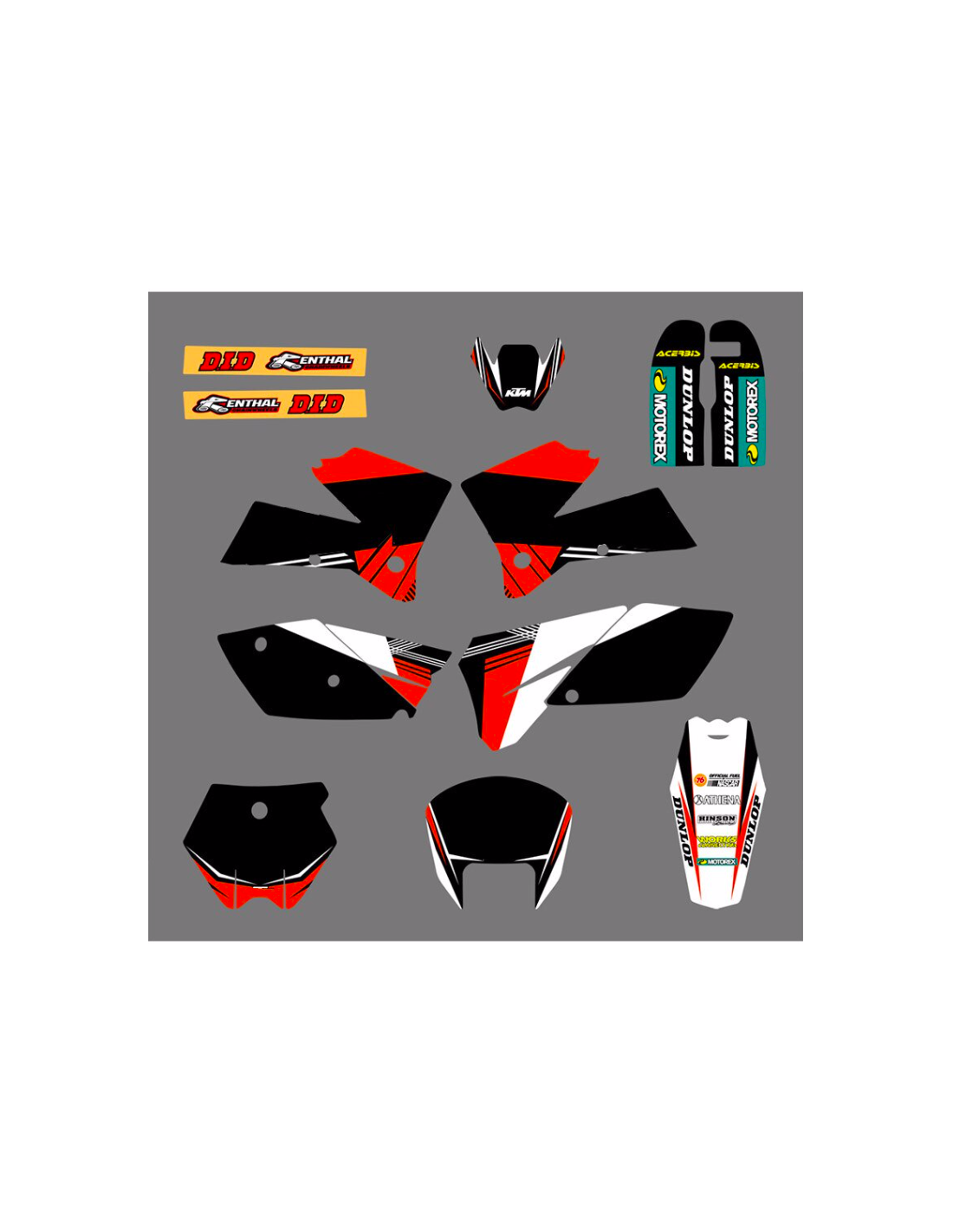 Gli adesivi sono realizzati con materiali crystal di prima qualità che permettono di adattarsi facilmente e perfettamente alle plastiche della moto del cliente. La resistenza del materiale permette alle nostre grafiche di rimanere correttamente incollate anche durante le più difficili condizioni di uso della moto. Il montaggio, grazie ai canali per lo scarico dell’aria, consente di installare agevolmente il prodotto e senza bolle. Utilizziamo macchinari di ultima generazione per la stampa, permettendo di stampare colori brillanti e sfumature in alta definizione. Sugli adesivi includiamo uno strato protettivo che riesce a mantenerli sempre lucenti nel corso degli anni, preservandoli anche da acqua e sporco. È possibile personalizzare il kit adesivi a proprio piacimento. Si possono aggiungere, togliere o sostituire sponsor tecnici, inserire un numero da gara personalizzato o il proprio nome. Si possono indicare tutte le modifiche nell’apposito spazio “Personalizzazione del prodotto” al momento dell’acquisto. Non ci limitiamo solo alle grafiche presenti sul nostro sito, inviandoci tramite mail o WhatsApp la foto di una grafica che non abbiamo, potremo farvi un preventivo e successivamente realizzarla. Con l’acquisto, si accettano le condizioni di vendita.