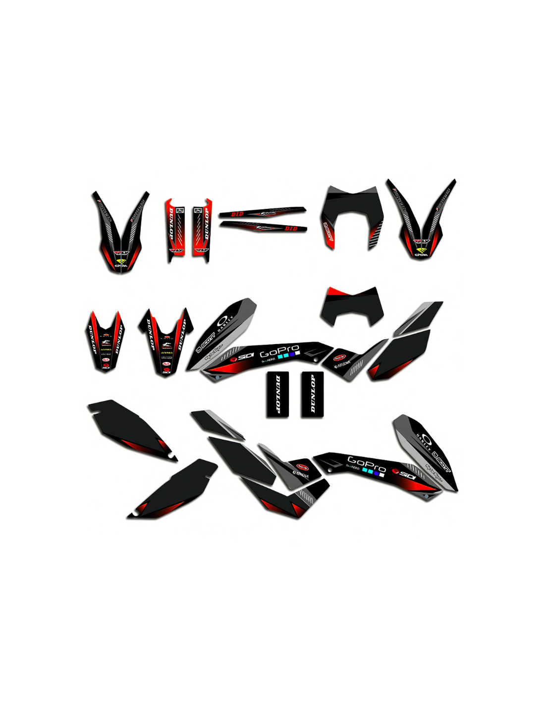 Gli adesivi sono realizzati con materiali crystal di prima qualità che permettono di adattarsi facilmente e perfettamente alle plastiche della moto del cliente. La resistenza del materiale permette alle nostre grafiche di rimanere correttamente incollate anche durante le più difficili condizioni di uso della moto. Il montaggio, grazie ai canali per lo scarico dell’aria, consente di installare agevolmente il prodotto e senza bolle. Utilizziamo macchinari di ultima generazione per la stampa, permettendo di stampare colori brillanti e sfumature in alta definizione. Sugli adesivi includiamo uno strato protettivo che riesce a mantenerli sempre lucenti nel corso degli anni, preservandoli anche da acqua e sporco. È possibile personalizzare il kit adesivi a proprio piacimento. Si possono aggiungere, togliere o sostituire sponsor tecnici, inserire un numero da gara personalizzato o il proprio nome. Si possono indicare tutte le modifiche nell’apposito spazio “Personalizzazione del prodotto” al momento dell’acquisto. Non ci limitiamo solo alle grafiche presenti sul nostro sito, inviandoci tramite mail o WhatsApp la foto di una grafica che non abbiamo, potremo farvi un preventivo e successivamente realizzarla. Con l’acquisto, si accettano le condizioni di vendita.