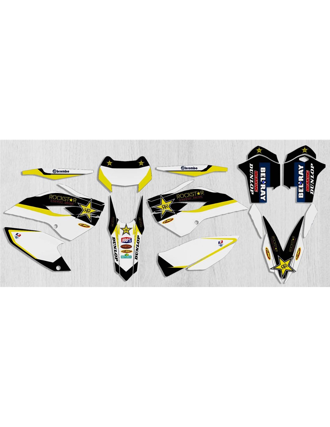 Gli adesivi sono realizzati con materiali crystal di prima qualità che permettono di adattarsi facilmente e perfettamente alle plastiche della moto del cliente. La resistenza del materiale permette alle nostre grafiche di rimanere correttamente incollate anche durante le più difficili condizioni di uso della moto. Il montaggio, grazie ai canali per lo scarico dell’aria, consente di installare agevolmente il prodotto e senza bolle. Utilizziamo macchinari di ultima generazione per la stampa, permettendo di stampare colori brillanti e sfumature in alta definizione. Sugli adesivi includiamo uno strato protettivo che riesce a mantenerli sempre lucenti nel corso degli anni, preservandoli anche da acqua e sporco. È possibile personalizzare il kit adesivi a proprio piacimento. Si possono aggiungere, togliere o sostituire sponsor tecnici, inserire un numero da gara personalizzato o il proprio nome. Si possono indicare tutte le modifiche nell’apposito spazio “Personalizzazione del prodotto” al momento dell’acquisto. Non ci limitiamo solo alle grafiche presenti sul nostro sito, inviandoci tramite mail o WhatsApp la foto di una grafica che non abbiamo, potremo farvi un preventivo e successivamente realizzarla. Con l’acquisto, si accettano le condizioni di vendita.
