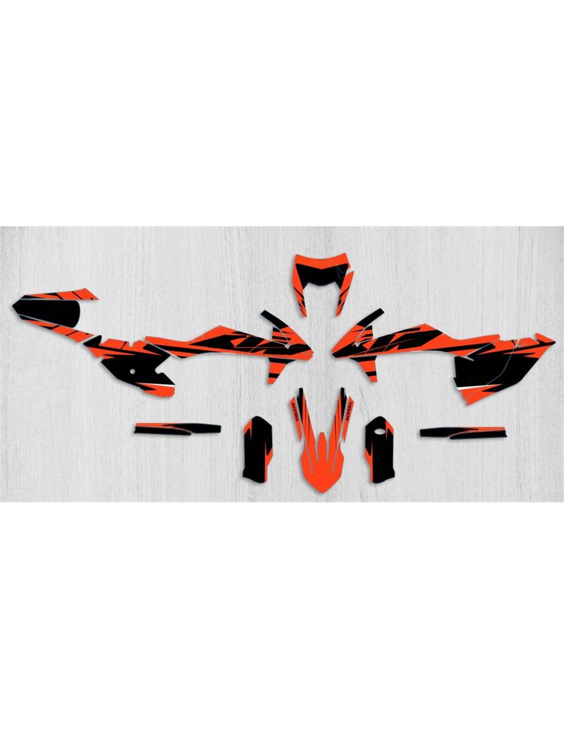 Gli adesivi sono realizzati con materiali crystal di prima qualità che permettono di adattarsi facilmente e perfettamente alle plastiche della moto del cliente. La resistenza del materiale permette alle nostre grafiche di rimanere correttamente incollate anche durante le più difficili condizioni di uso della moto. Il montaggio, grazie ai canali per lo scarico dell’aria, consente di installare agevolmente il prodotto e senza bolle. Utilizziamo macchinari di ultima generazione per la stampa, permettendo di stampare colori brillanti e sfumature in alta definizione. Sugli adesivi includiamo uno strato protettivo che riesce a mantenerli sempre lucenti nel corso degli anni, preservandoli anche da acqua e sporco. È possibile personalizzare il kit adesivi a proprio piacimento. Si possono aggiungere, togliere o sostituire sponsor tecnici, inserire un numero da gara personalizzato o il proprio nome. Si possono indicare tutte le modifiche nell’apposito spazio “Personalizzazione del prodotto” al momento dell’acquisto. Non ci limitiamo solo alle grafiche presenti sul nostro sito, inviandoci tramite mail o WhatsApp la foto di una grafica che non abbiamo, potremo farvi un preventivo e successivamente realizzarla. Con l’acquisto, si accettano le condizioni di vendita.