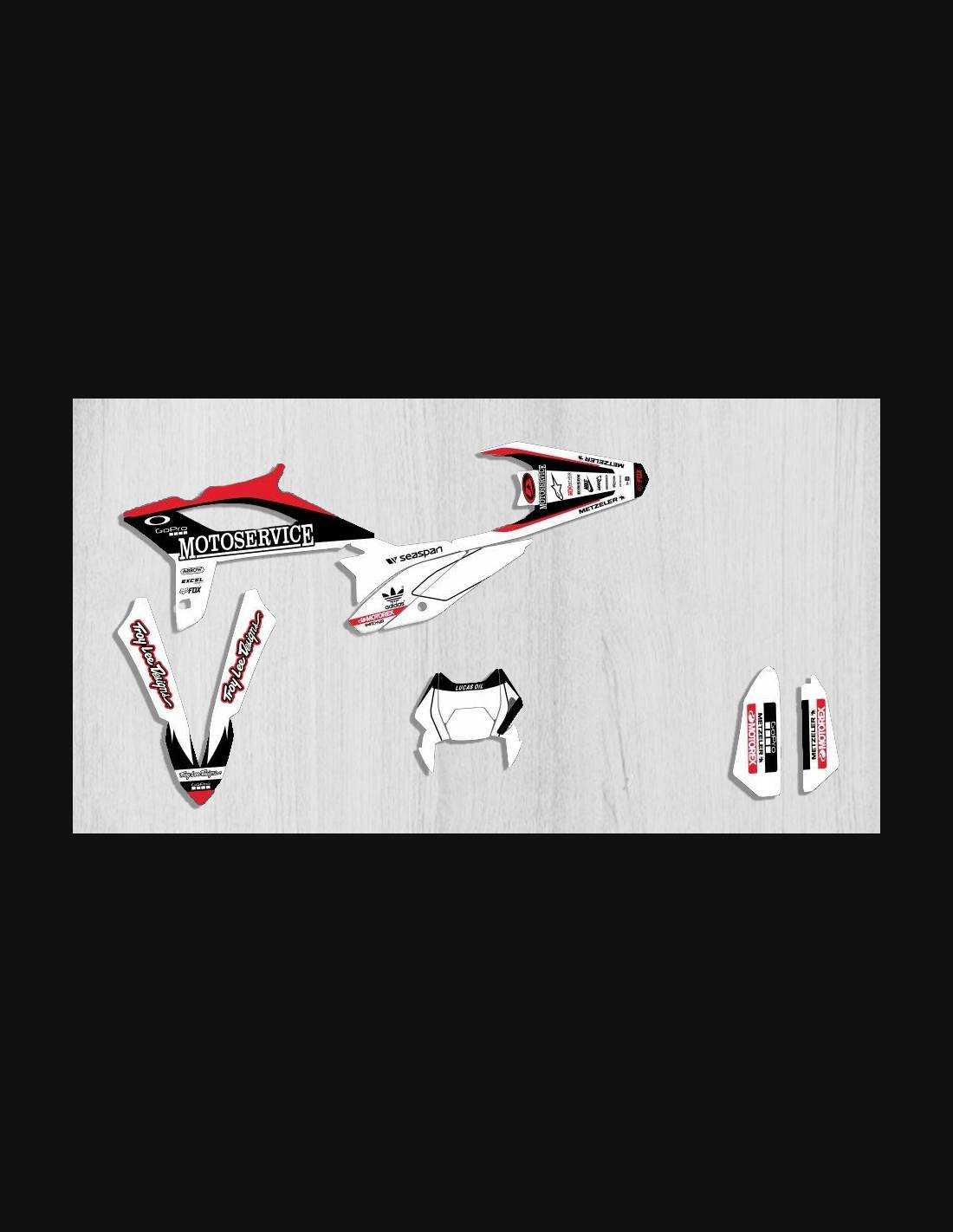 Gli adesivi sono realizzati con materiali crystal di prima qualità che permettono di adattarsi facilmente e perfettamente alle plastiche della moto del cliente. La resistenza del materiale permette alle nostre grafiche di rimanere correttamente incollate anche durante le più difficili condizioni di uso della moto. Il montaggio, grazie ai canali per lo scarico dell’aria, consente di installare agevolmente il prodotto e senza bolle. Utilizziamo macchinari di ultima generazione per la stampa, permettendo di stampare colori brillanti e sfumature in alta definizione. Sugli adesivi includiamo uno strato protettivo che riesce a mantenerli sempre lucenti nel corso degli anni, preservandoli anche da acqua e sporco. È possibile personalizzare il kit adesivi a proprio piacimento. Si possono aggiungere, togliere o sostituire sponsor tecnici, inserire un numero da gara personalizzato o il proprio nome. Si possono indicare tutte le modifiche nell’apposito spazio “Personalizzazione del prodotto” al momento dell’acquisto. Non ci limitiamo solo alle grafiche presenti sul nostro sito, inviandoci tramite mail o WhatsApp la foto di una grafica che non abbiamo, potremo farvi un preventivo e successivamente realizzarla. Con l’acquisto, si accettano le condizioni di vendita.