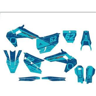 Gli adesivi sono realizzati con materiali crystal di prima qualità che permettono di adattarsi facilmente e perfettamente alle plastiche della moto del cliente. La resistenza del materiale permette alle nostre grafiche di rimanere correttamente incollate anche durante le più difficili condizioni di uso della moto. Il montaggio, grazie ai canali per lo scarico dell’aria, consente di installare agevolmente il prodotto e senza bolle. Utilizziamo macchinari di ultima generazione per la stampa, permettendo di stampare colori brillanti e sfumature in alta definizione. Sugli adesivi includiamo uno strato protettivo che riesce a mantenerli sempre lucenti nel corso degli anni, preservandoli anche da acqua e sporco. È possibile personalizzare il kit adesivi a proprio piacimento. Si possono aggiungere, togliere o sostituire sponsor tecnici, inserire un numero da gara personalizzato o il proprio nome. Si possono indicare tutte le modifiche nell’apposito spazio “Personalizzazione del prodotto” al momento dell’acquisto. Non ci limitiamo solo alle grafiche presenti sul nostro sito, inviandoci tramite mail o WhatsApp la foto di una grafica che non abbiamo, potremo farvi un preventivo e successivamente realizzarla. Con l’acquisto, si accettano le condizioni di vendita.