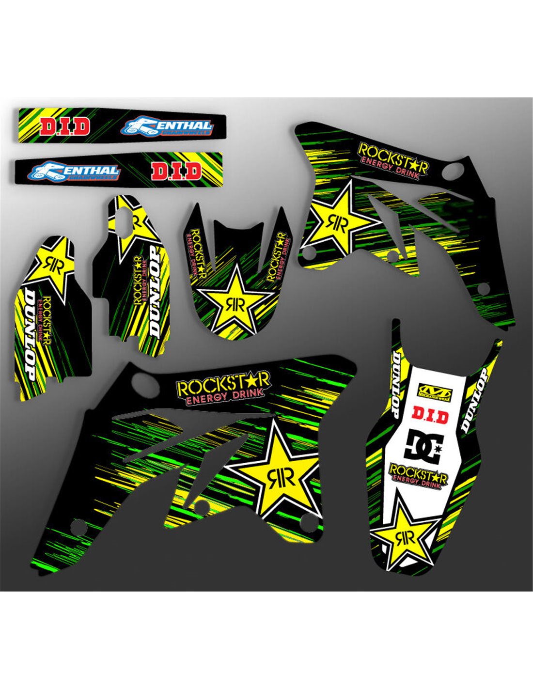 Gli adesivi sono realizzati con materiali crystal di prima qualità che permettono di adattarsi facilmente e perfettamente alle plastiche della moto del cliente. La resistenza del materiale permette alle nostre grafiche di rimanere correttamente incollate anche durante le più difficili condizioni di uso della moto. Il montaggio, grazie ai canali per lo scarico dell’aria, consente di installare agevolmente il prodotto e senza bolle. Utilizziamo macchinari di ultima generazione per la stampa, permettendo di stampare colori brillanti e sfumature in alta definizione. Sugli adesivi includiamo uno strato protettivo che riesce a mantenerli sempre lucenti nel corso degli anni, preservandoli anche da acqua e sporco. È possibile personalizzare il kit adesivi a proprio piacimento. Si possono aggiungere, togliere o sostituire sponsor tecnici, inserire un numero da gara personalizzato o il proprio nome. Si possono indicare tutte le modifiche nell’apposito spazio “Personalizzazione del prodotto” al momento dell’acquisto. Non ci limitiamo solo alle grafiche presenti sul nostro sito, inviandoci tramite mail o WhatsApp la foto di una grafica che non abbiamo, potremo farvi un preventivo e successivamente realizzarla. Con l’acquisto, si accettano le condizioni di vendita.