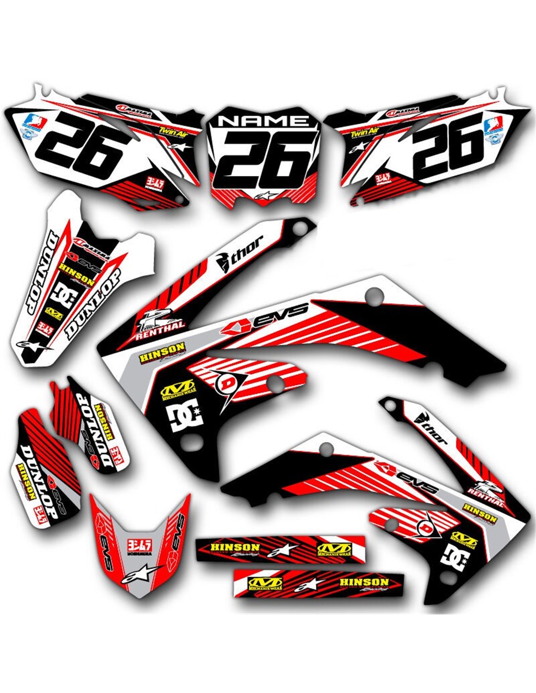 Gli adesivi sono realizzati con materiali crystal di prima qualità che permettono di adattarsi facilmente e perfettamente alle plastiche della moto del cliente. La resistenza del materiale permette alle nostre grafiche di rimanere correttamente incollate anche durante le più difficili condizioni di uso della moto. Il montaggio, grazie ai canali per lo scarico dell’aria, consente di installare agevolmente il prodotto e senza bolle. Utilizziamo macchinari di ultima generazione per la stampa, permettendo di stampare colori brillanti e sfumature in alta definizione. Sugli adesivi includiamo uno strato protettivo che riesce a mantenerli sempre lucenti nel corso degli anni, preservandoli anche da acqua e sporco. È possibile personalizzare il kit adesivi a proprio piacimento. Si possono aggiungere, togliere o sostituire sponsor tecnici, inserire un numero da gara personalizzato o il proprio nome. Si possono indicare tutte le modifiche nell’apposito spazio “Personalizzazione del prodotto” al momento dell’acquisto. Non ci limitiamo solo alle grafiche presenti sul nostro sito, inviandoci tramite mail o WhatsApp la foto di una grafica che non abbiamo, potremo farvi un preventivo e successivamente realizzarla. Con l’acquisto, si accettano le condizioni di vendita.