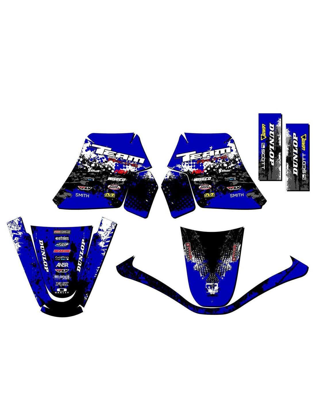 Gli adesivi sono realizzati con materiali crystal di prima qualità che permettono di adattarsi facilmente e perfettamente alle plastiche della moto del cliente. La resistenza del materiale permette alle nostre grafiche di rimanere correttamente incollate anche durante le più difficili condizioni di uso della moto. Il montaggio, grazie ai canali per lo scarico dell’aria, consente di installare agevolmente il prodotto e senza bolle. Utilizziamo macchinari di ultima generazione per la stampa, permettendo di stampare colori brillanti e sfumature in alta definizione. Sugli adesivi includiamo uno strato protettivo che riesce a mantenerli sempre lucenti nel corso degli anni, preservandoli anche da acqua e sporco. È possibile personalizzare il kit adesivi a proprio piacimento. Si possono aggiungere, togliere o sostituire sponsor tecnici, inserire un numero da gara personalizzato o il proprio nome. Si possono indicare tutte le modifiche nell’apposito spazio “Personalizzazione del prodotto” al momento dell’acquisto. Non ci limitiamo solo alle grafiche presenti sul nostro sito, inviandoci tramite mail o WhatsApp la foto di una grafica che non abbiamo, potremo farvi un preventivo e successivamente realizzarla. Con l’acquisto, si accettano le condizioni di vendita.
