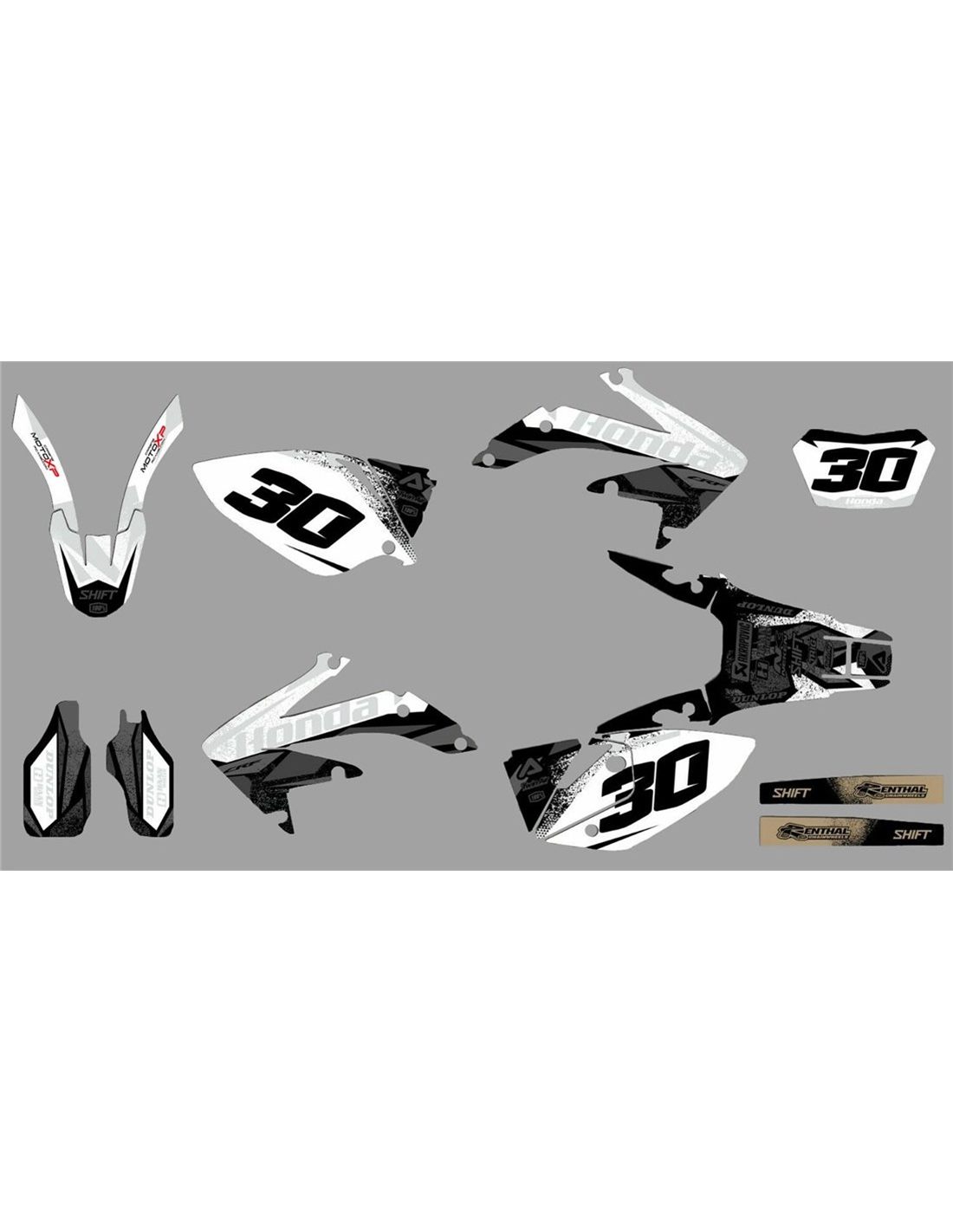 Gli adesivi sono realizzati con materiali crystal di prima qualità che permettono di adattarsi facilmente e perfettamente alle plastiche della moto del cliente. La resistenza del materiale permette alle nostre grafiche di rimanere correttamente incollate anche durante le più difficili condizioni di uso della moto. Il montaggio, grazie ai canali per lo scarico dell’aria, consente di installare agevolmente il prodotto e senza bolle. Utilizziamo macchinari di ultima generazione per la stampa, permettendo di stampare colori brillanti e sfumature in alta definizione. Sugli adesivi includiamo uno strato protettivo che riesce a mantenerli sempre lucenti nel corso degli anni, preservandoli anche da acqua e sporco. È possibile personalizzare il kit adesivi a proprio piacimento. Si possono aggiungere, togliere o sostituire sponsor tecnici, inserire un numero da gara personalizzato o il proprio nome. Si possono indicare tutte le modifiche nell’apposito spazio “Personalizzazione del prodotto” al momento dell’acquisto. Non ci limitiamo solo alle grafiche presenti sul nostro sito, inviandoci tramite mail o WhatsApp la foto di una grafica che non abbiamo, potremo farvi un preventivo e successivamente realizzarla. Con l’acquisto, si accettano le condizioni di vendita.