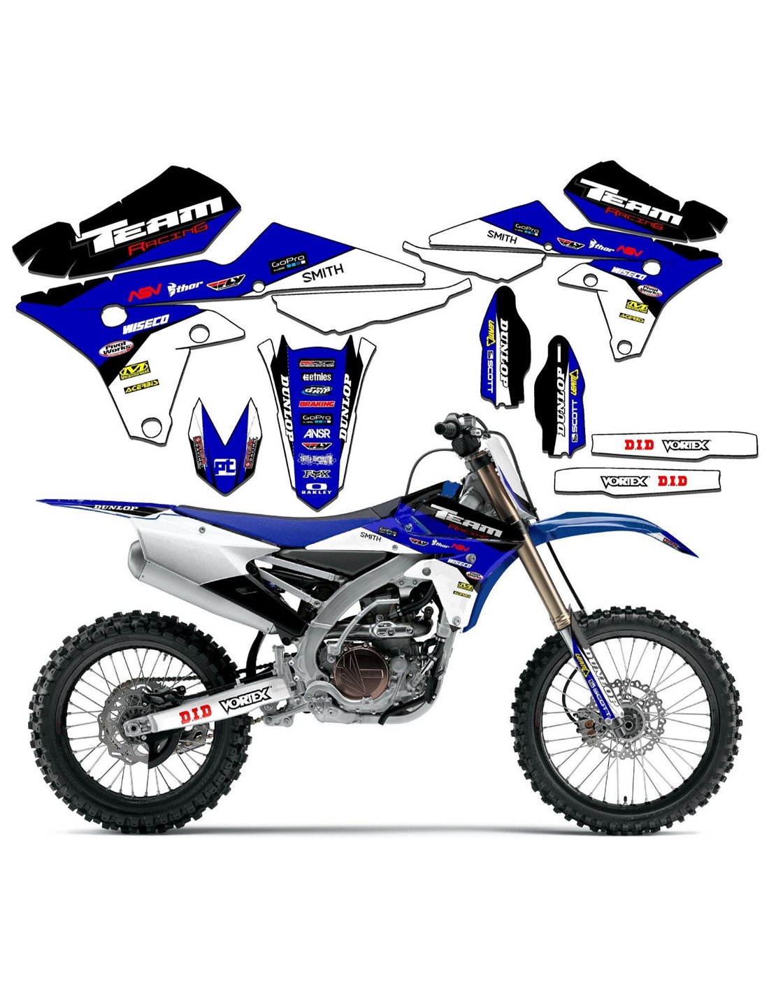 Gli adesivi sono realizzati con materiali crystal di prima qualità che permettono di adattarsi facilmente e perfettamente alle plastiche della moto del cliente. La resistenza del materiale permette alle nostre grafiche di rimanere correttamente incollate anche durante le più difficili condizioni di uso della moto. Il montaggio, grazie ai canali per lo scarico dell’aria, consente di installare agevolmente il prodotto e senza bolle. Utilizziamo macchinari di ultima generazione per la stampa, permettendo di stampare colori brillanti e sfumature in alta definizione. Sugli adesivi includiamo uno strato protettivo che riesce a mantenerli sempre lucenti nel corso degli anni, preservandoli anche da acqua e sporco. È possibile personalizzare il kit adesivi a proprio piacimento. Si possono aggiungere, togliere o sostituire sponsor tecnici, inserire un numero da gara personalizzato o il proprio nome. Si possono indicare tutte le modifiche nell’apposito spazio “Personalizzazione del prodotto” al momento dell’acquisto. Non ci limitiamo solo alle grafiche presenti sul nostro sito, inviandoci tramite mail o WhatsApp la foto di una grafica che non abbiamo, potremo farvi un preventivo e successivamente realizzarla. Con l’acquisto, si accettano le condizioni di vendita.
