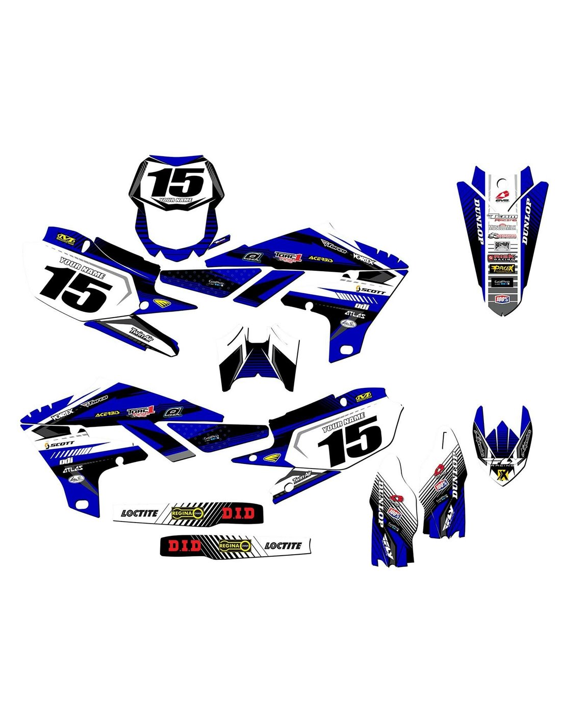 Gli adesivi sono realizzati con materiali crystal di prima qualità che permettono di adattarsi facilmente e perfettamente alle plastiche della moto del cliente. La resistenza del materiale permette alle nostre grafiche di rimanere correttamente incollate anche durante le più difficili condizioni di uso della moto. Il montaggio, grazie ai canali per lo scarico dell’aria, consente di installare agevolmente il prodotto e senza bolle. Utilizziamo macchinari di ultima generazione per la stampa, permettendo di stampare colori brillanti e sfumature in alta definizione. Sugli adesivi includiamo uno strato protettivo che riesce a mantenerli sempre lucenti nel corso degli anni, preservandoli anche da acqua e sporco. È possibile personalizzare il kit adesivi a proprio piacimento. Si possono aggiungere, togliere o sostituire sponsor tecnici, inserire un numero da gara personalizzato o il proprio nome. Si possono indicare tutte le modifiche nell’apposito spazio “Personalizzazione del prodotto” al momento dell’acquisto. Non ci limitiamo solo alle grafiche presenti sul nostro sito, inviandoci tramite mail o WhatsApp la foto di una grafica che non abbiamo, potremo farvi un preventivo e successivamente realizzarla. Con l’acquisto, si accettano le condizioni di vendita.