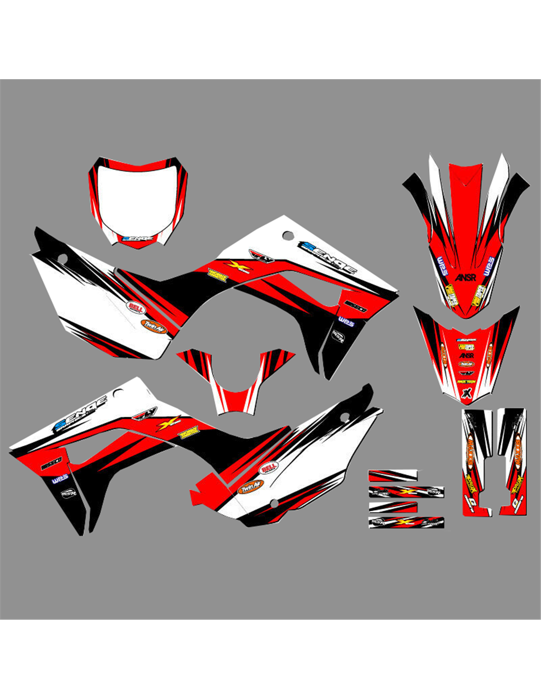 Gli adesivi sono realizzati con materiali crystal di prima qualità che permettono di adattarsi facilmente e perfettamente alle plastiche della moto del cliente. La resistenza del materiale permette alle nostre grafiche di rimanere correttamente incollate anche durante le più difficili condizioni di uso della moto. Il montaggio, grazie ai canali per lo scarico dell’aria, consente di installare agevolmente il prodotto e senza bolle. Utilizziamo macchinari di ultima generazione per la stampa, permettendo di stampare colori brillanti e sfumature in alta definizione. Sugli adesivi includiamo uno strato protettivo che riesce a mantenerli sempre lucenti nel corso degli anni, preservandoli anche da acqua e sporco. È possibile personalizzare il kit adesivi a proprio piacimento. Si possono aggiungere, togliere o sostituire sponsor tecnici, inserire un numero da gara personalizzato o il proprio nome. Si possono indicare tutte le modifiche nell’apposito spazio “Personalizzazione del prodotto” al momento dell’acquisto. Non ci limitiamo solo alle grafiche presenti sul nostro sito, inviandoci tramite mail o WhatsApp la foto di una grafica che non abbiamo, potremo farvi un preventivo e successivamente realizzarla. Con l’acquisto, si accettano le condizioni di vendita.