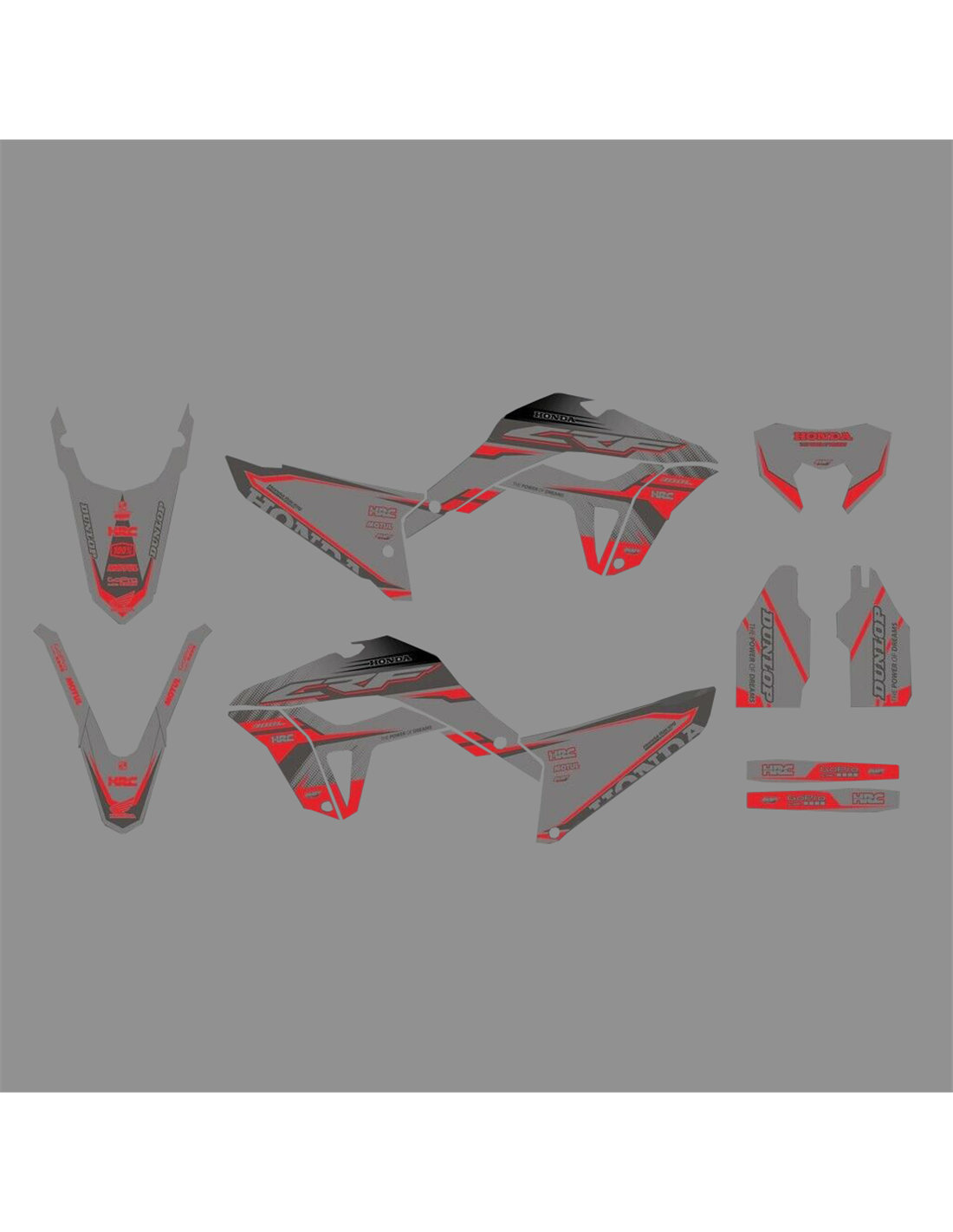 Gli adesivi sono realizzati con materiali crystal di prima qualità che permettono di adattarsi facilmente e perfettamente alle plastiche della moto del cliente. La resistenza del materiale permette alle nostre grafiche di rimanere correttamente incollate anche durante le più difficili condizioni di uso della moto. Il montaggio, grazie ai canali per lo scarico dell’aria, consente di installare agevolmente il prodotto e senza bolle. Utilizziamo macchinari di ultima generazione per la stampa, permettendo di stampare colori brillanti e sfumature in alta definizione. Sugli adesivi includiamo uno strato protettivo che riesce a mantenerli sempre lucenti nel corso degli anni, preservandoli anche da acqua e sporco. È possibile personalizzare il kit adesivi a proprio piacimento. Si possono aggiungere, togliere o sostituire sponsor tecnici, inserire un numero da gara personalizzato o il proprio nome. Si possono indicare tutte le modifiche nell’apposito spazio “Personalizzazione del prodotto” al momento dell’acquisto. Non ci limitiamo solo alle grafiche presenti sul nostro sito, inviandoci tramite mail o WhatsApp la foto di una grafica che non abbiamo, potremo farvi un preventivo e successivamente realizzarla. Con l’acquisto, si accettano le condizioni di vendita.