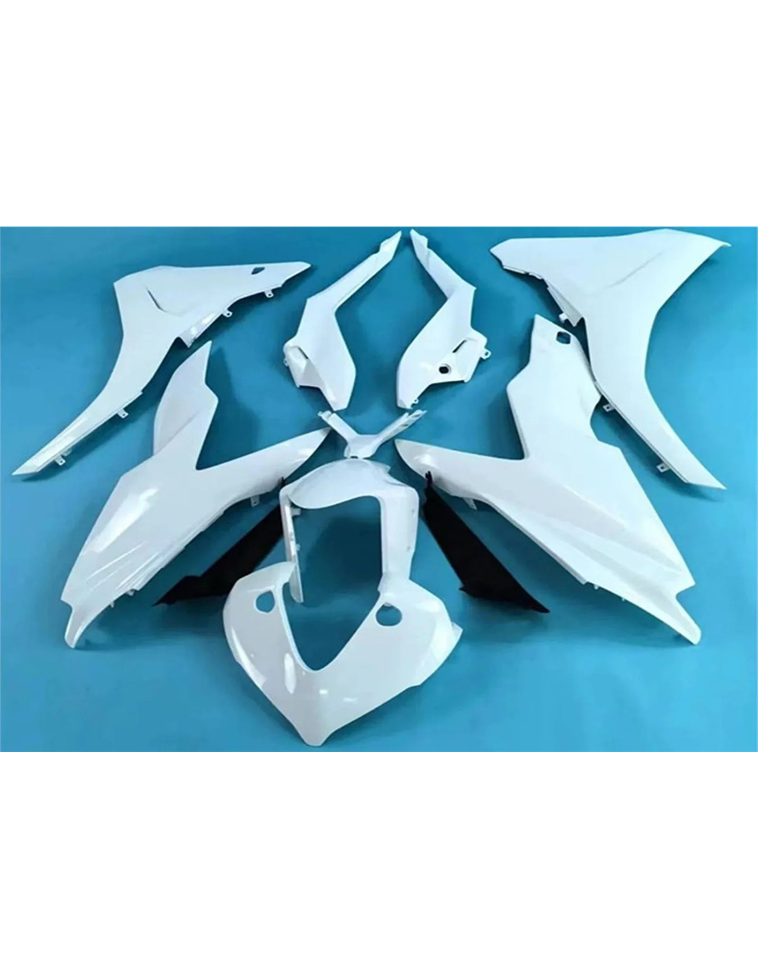 Il kit di carene comprende: cupolino, fianchi destro e sinistro, puntale destro e sinistro, codone, parafango anteriore e tutte le eventuali plastiche nere interne.