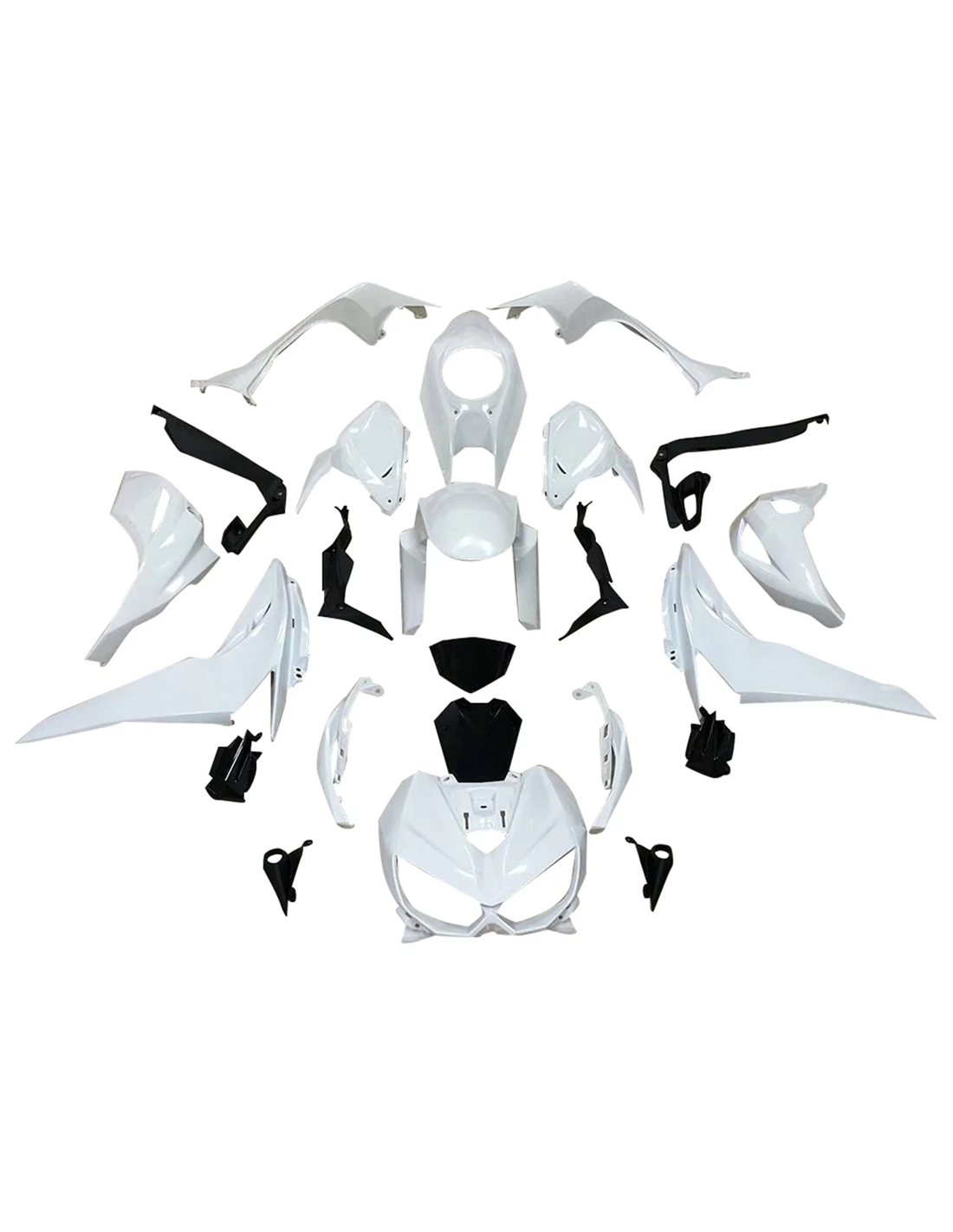 Il kit di carene comprende: cupolino, fianchi destro e sinistro, puntale destro e sinistro, codone, parafango anteriore e tutte le eventuali plastiche nere interne.