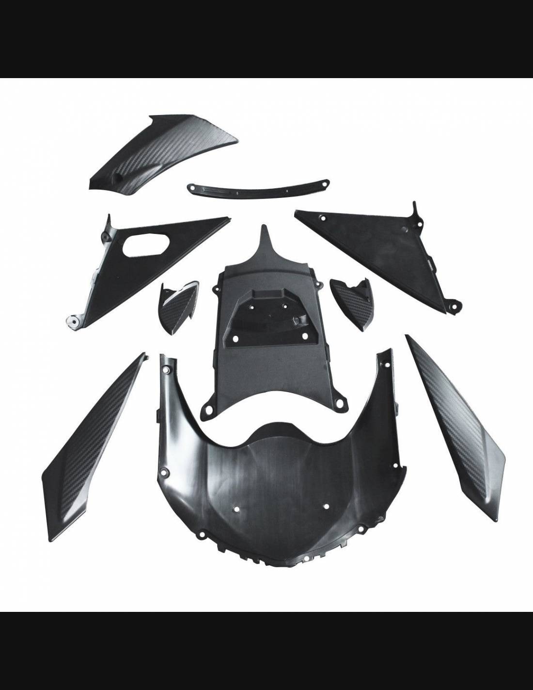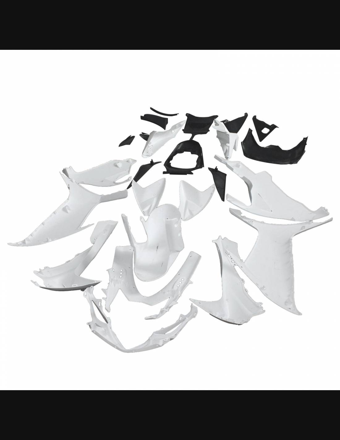 Il kit di carene comprende: cupolino, fianchi destro e sinistro, puntale destro e sinistro, codone, parafango anteriore e tutte le eventuali plastiche nere interne.
