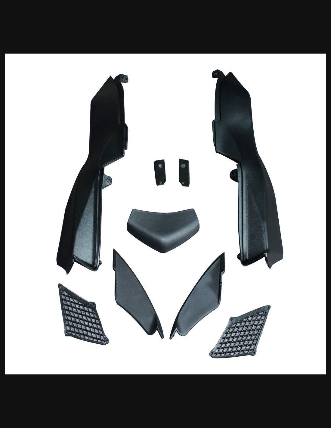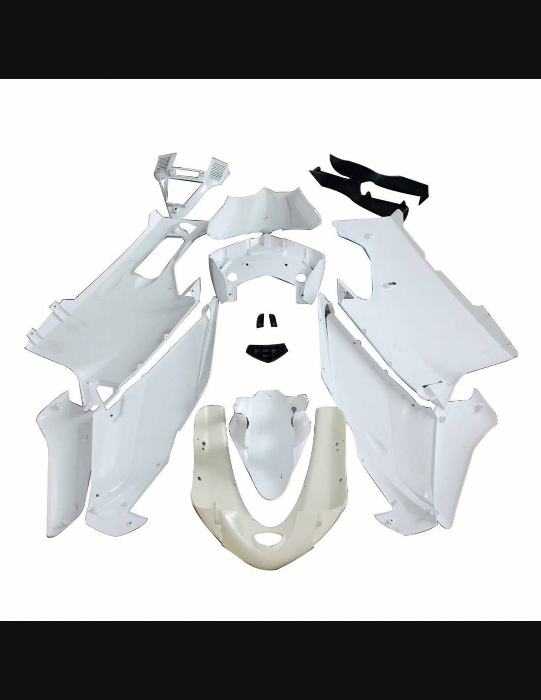 Il kit di carene comprende: cupolino, fianchi destro e sinistro, puntale destro e sinistro, codone, parafango anteriore e tutte le eventuali plastiche nere interne.