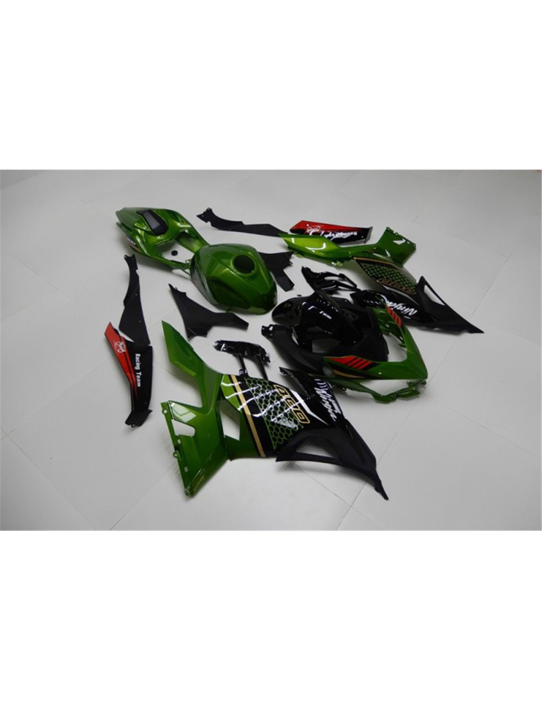 Elite: usiamo i colori compatibili con il serbatoio originale della moto (es. Verde Kawasaki), le grafiche vengono stampate con le Varie Sfumature con Plotter da Stampa a 8 colori con inchiostri ECO-SOL MAX con qualità e resistenza ai raggi solari fino a 7 anni garantiti dalla Ditta APA Italia che ci fornisce i materiali, messi sotto tre strati di trasparente in modo che rimangano brillanti per anni, inoltre l’intera carena è verniciata all'interno.