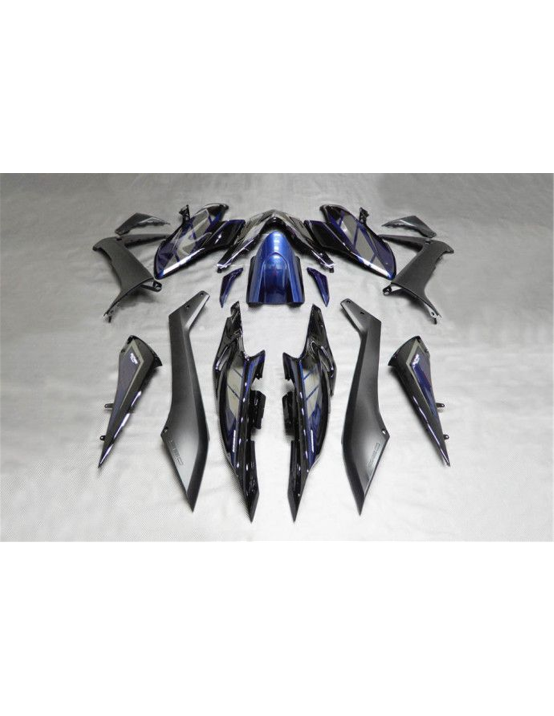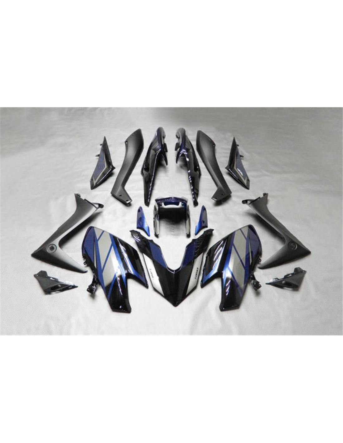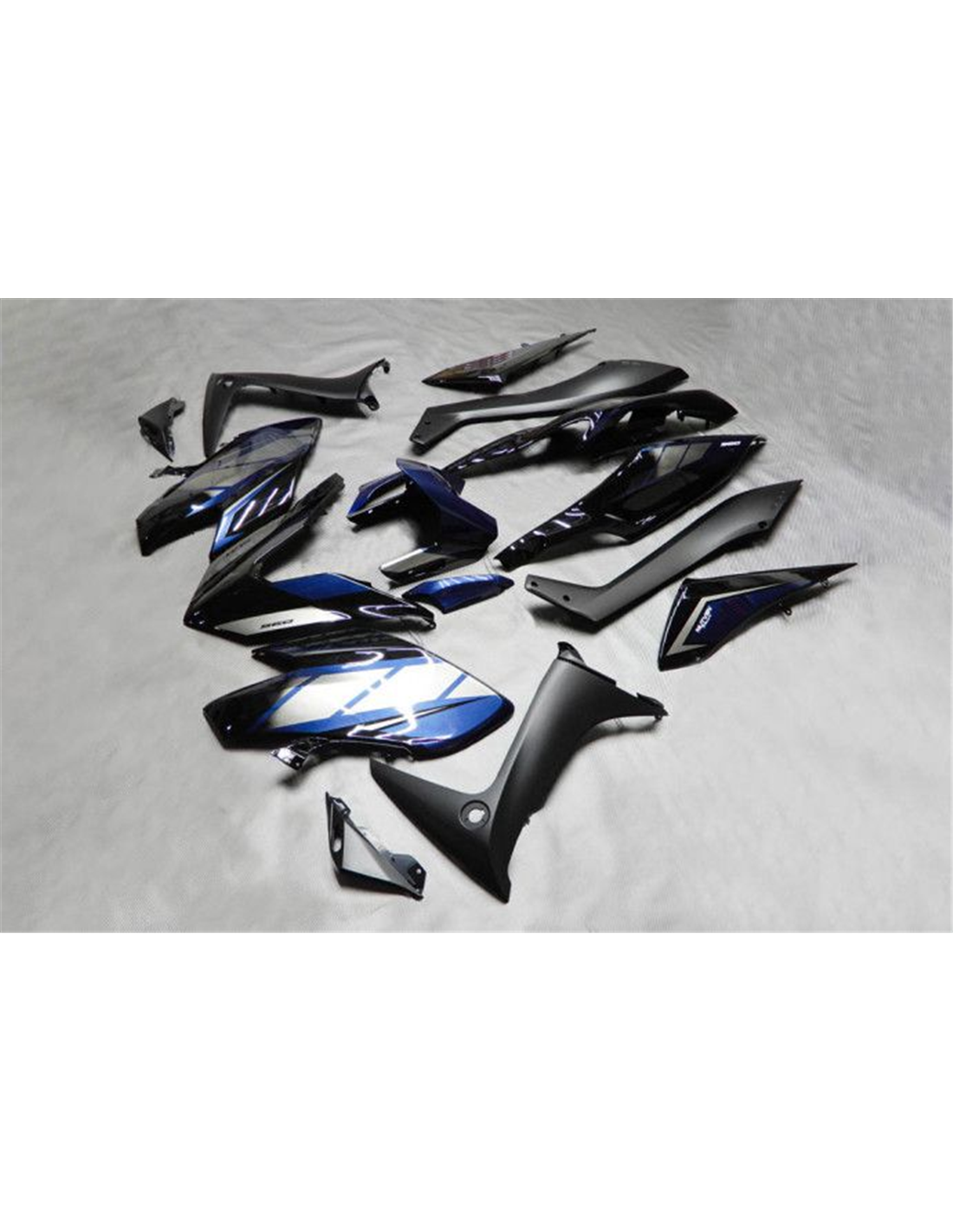 Il kit di carene complete comprende: cupolino, fianchi destro e sinistro, puntale destro e sinistro, codone, parafango anteriore e varie altre plastiche nere interne.