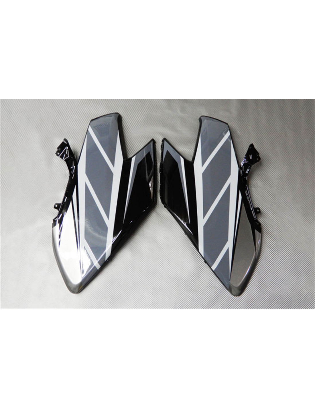 Le nostre carene stradali sono realizzate in ABS (plastica) e sono compatibili con le carene originali. Vengono fornite già forate e con tutti i vari attacchi interni, in modo da garantire un facile montaggio, senza modifiche sulla moto del cliente. Inoltre sono compatibili con la viteria ed eventuali altri accessori originali della moto. Nel prezzo includiamo anche la protezione paracalore, da applicare sui puntali.