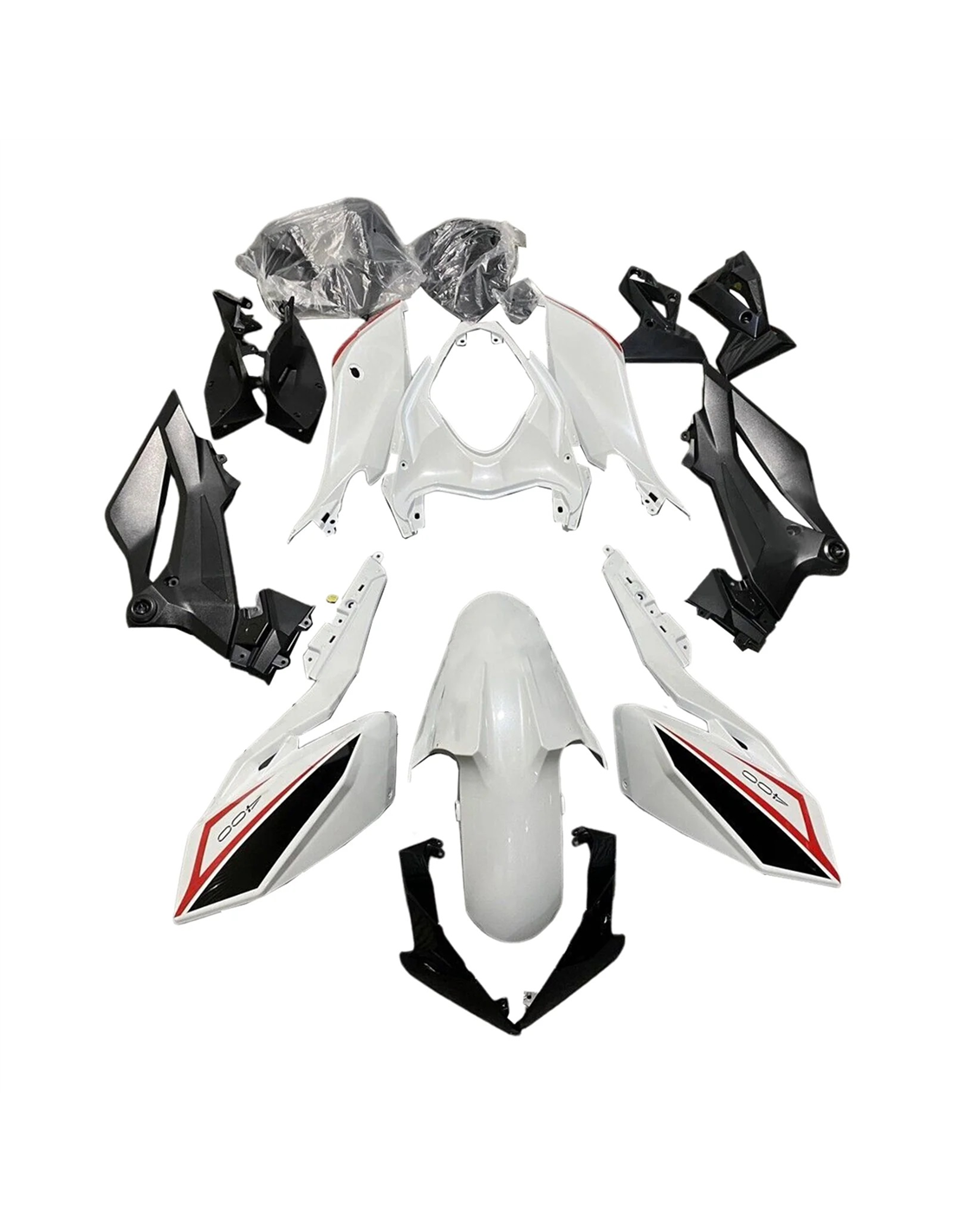 Le nostre carene stradali sono realizzate in ABS (plastica) e sono compatibili con le carene originali. Vengono fornite già forate e con tutti i vari attacchi interni, in modo da garantire un facile montaggio, senza modifiche sulla moto del cliente. Inoltre sono compatibili con la viteria ed eventuali altri accessori originali della moto. Nel prezzo includiamo anche la protezione paracalore, da applicare sui puntali.