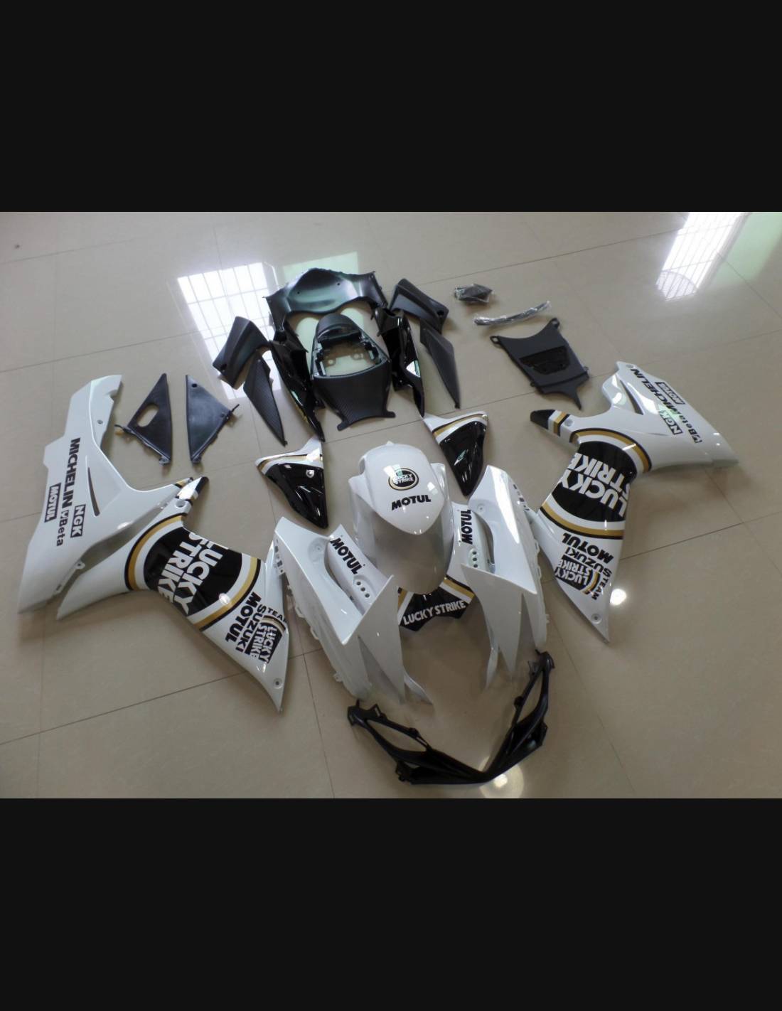 Le nostre carene stradali sono realizzate in ABS (plastica) e sono compatibili con le carene originali. Vengono fornite già forate e con tutti i vari attacchi interni, in modo da garantire un facile montaggio, senza modifiche sulla moto del cliente. Inoltre sono compatibili con la viteria ed eventuali altri accessori originali della moto. Nel prezzo includiamo anche la protezione paracalore, da applicare sui puntali.