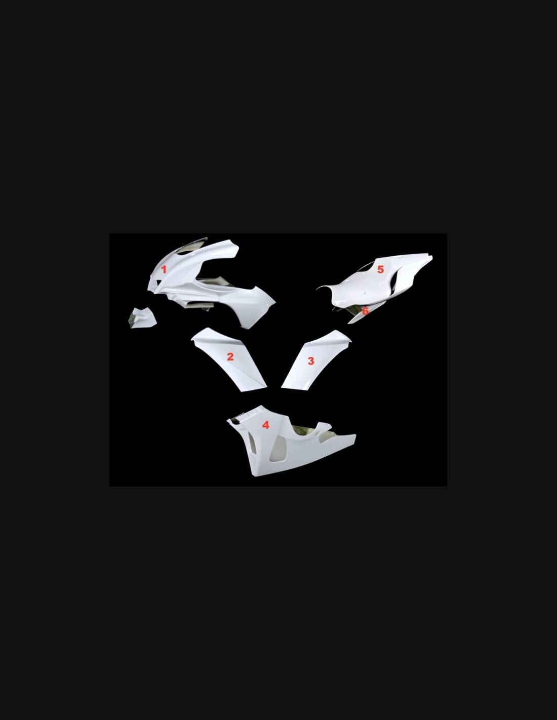 Il kit di carene comprende: cupolino, fianchi destro e sinistro, puntale a vasca e codone (il copriserbatoio non è incluso nel prezzo)