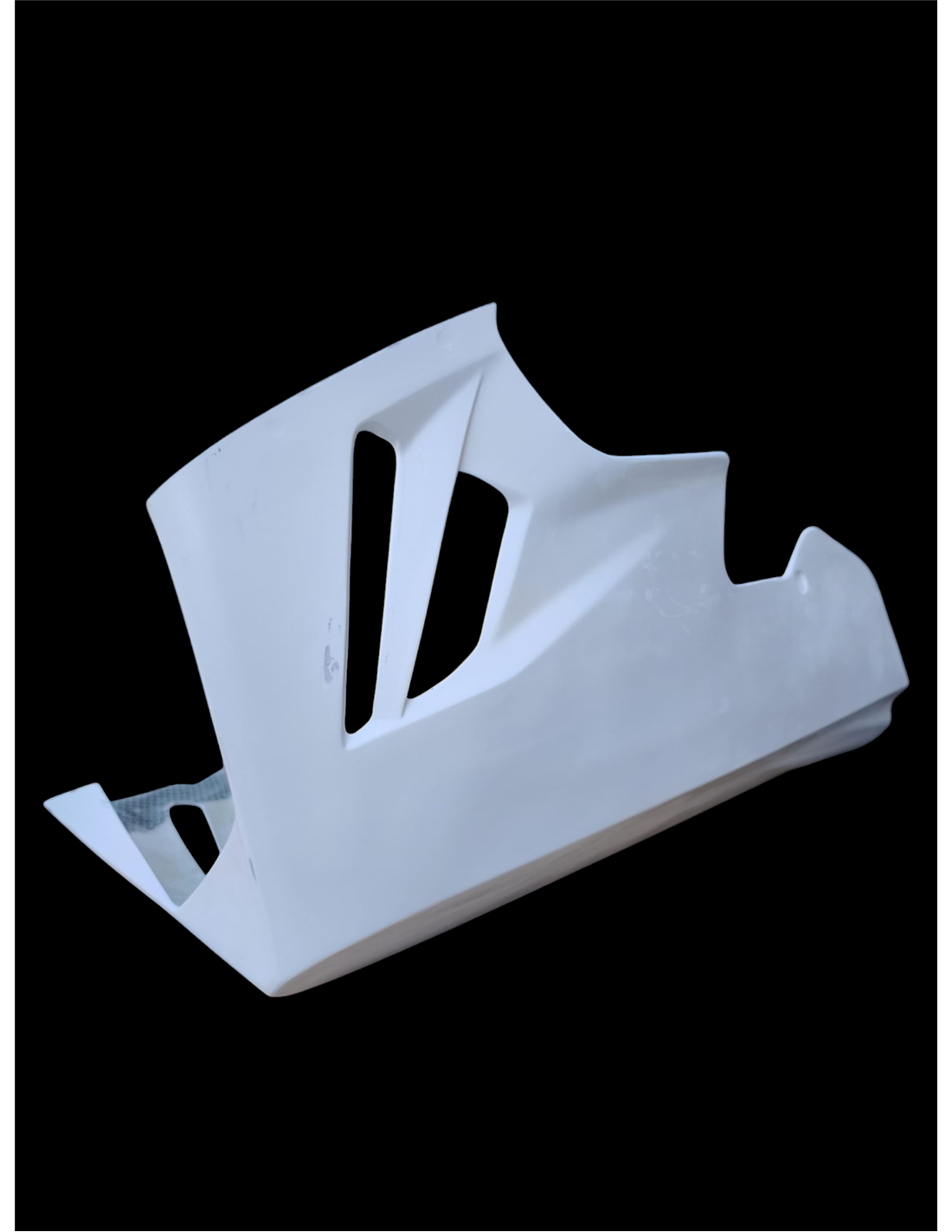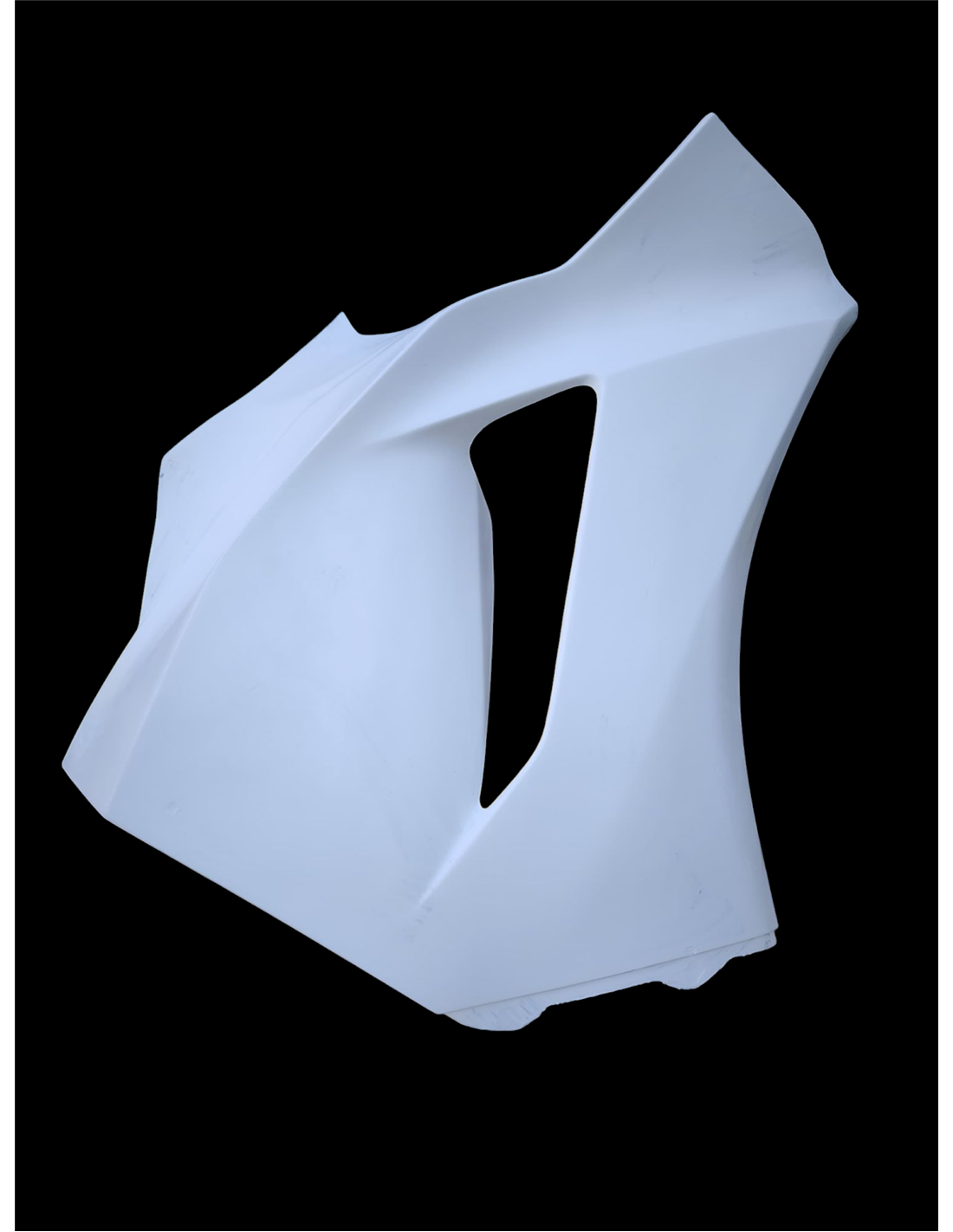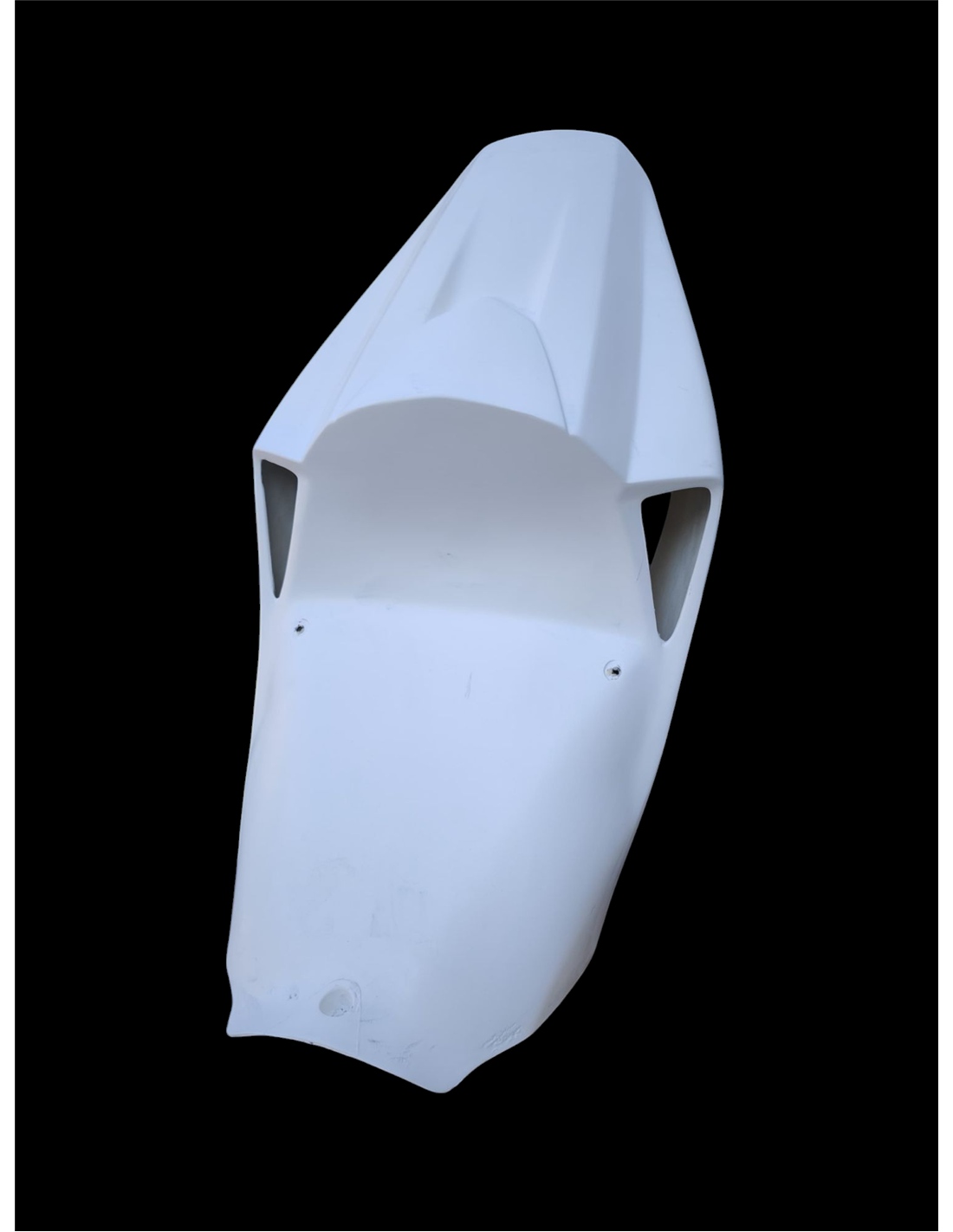 Le nostre carene racing sono realizzate in tessuto di vetroresina, rinforzate in carbonio e kevlar nei punti di maggiore sforzo. Sono omologate per i vari campionati e per l’uso amatoriale in pista grazie alla vasca chiusa raccogli liquido. Segniamo dove vanno forate, in modo da permettere al cliente finale di realizzare il foro in base alla dimensione della viteria che andrà ad utilizzare.