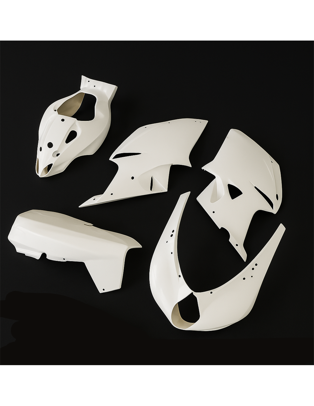 Il kit di carene comprende: cupolino, fianchi destro e sinistro, puntale a vasca e codone (il copriserbatoio non è incluso nel prezzo)