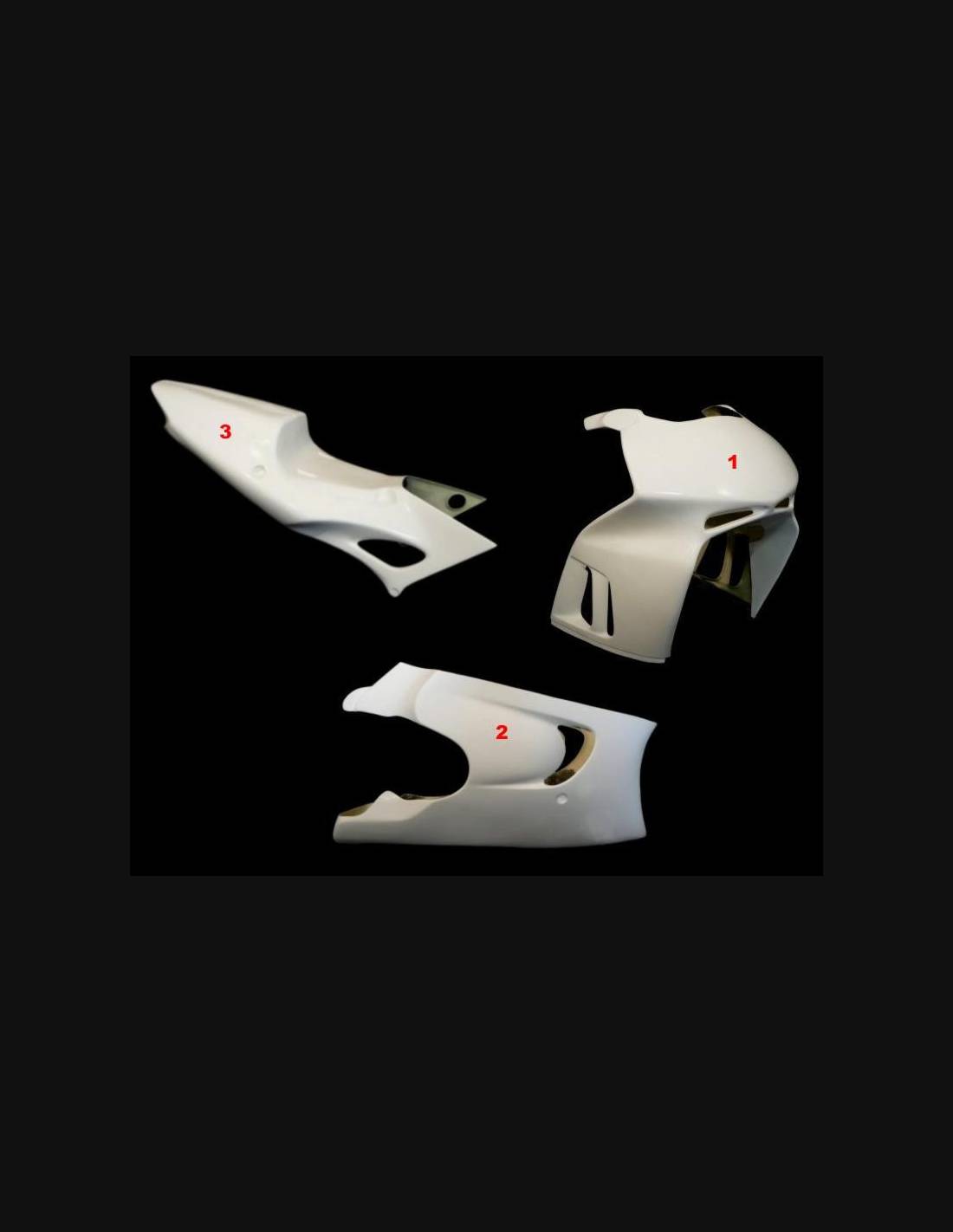 Il kit di carene comprende: cupolino, fianchi destro e sinistro, puntale a vasca e codone (il copriserbatoio non è incluso nel prezzo)