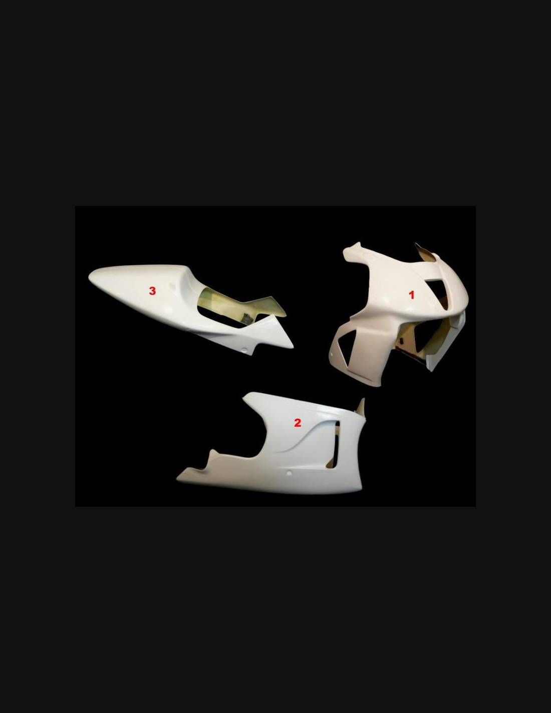Il kit di carene comprende: cupolino, fianchi destro e sinistro, puntale a vasca e codone (il copriserbatoio non è incluso nel prezzo)
