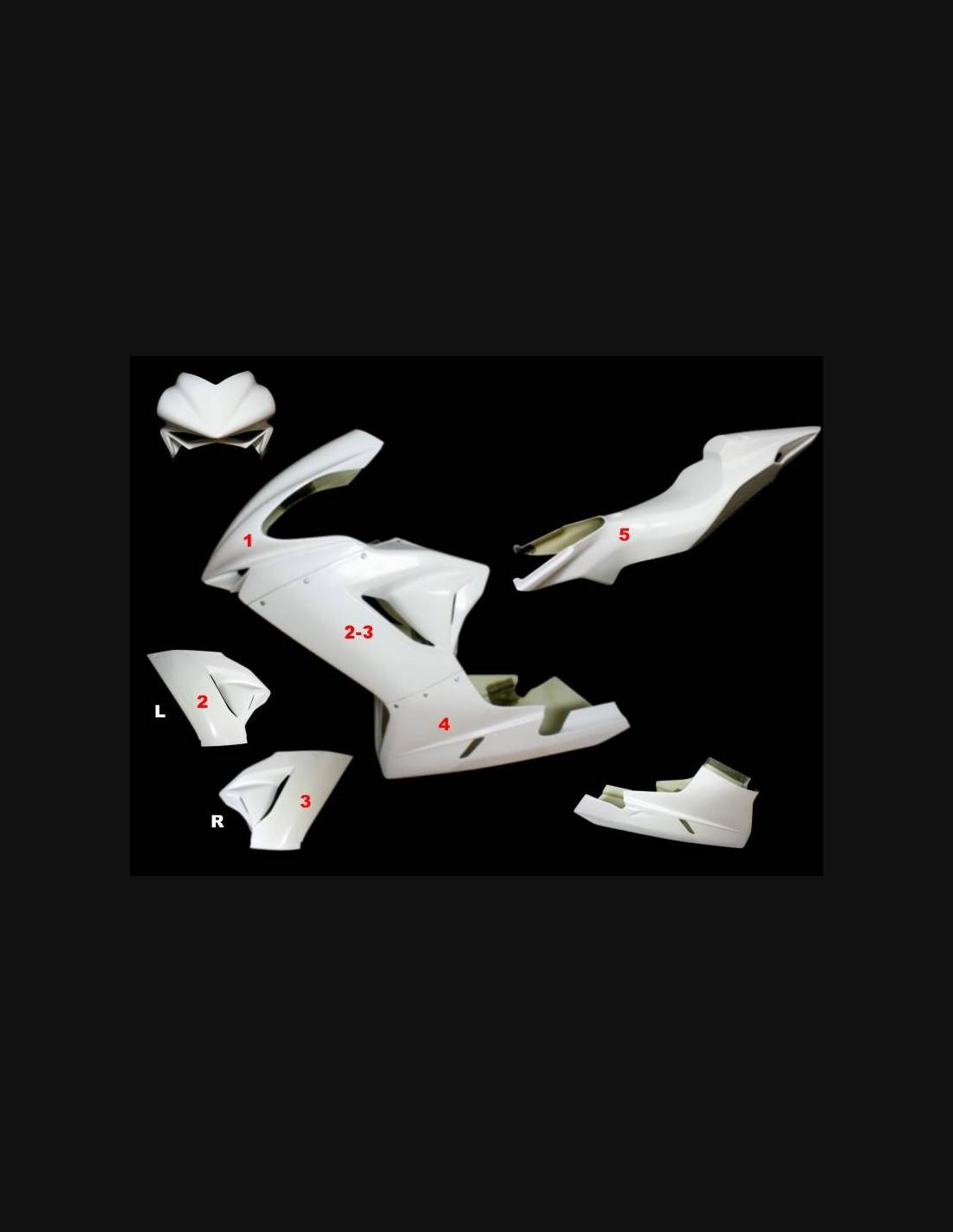 Il kit di carene comprende: cupolino, fianchi destro e sinistro, puntale a vasca e codone (il copriserbatoio non è incluso nel prezzo)