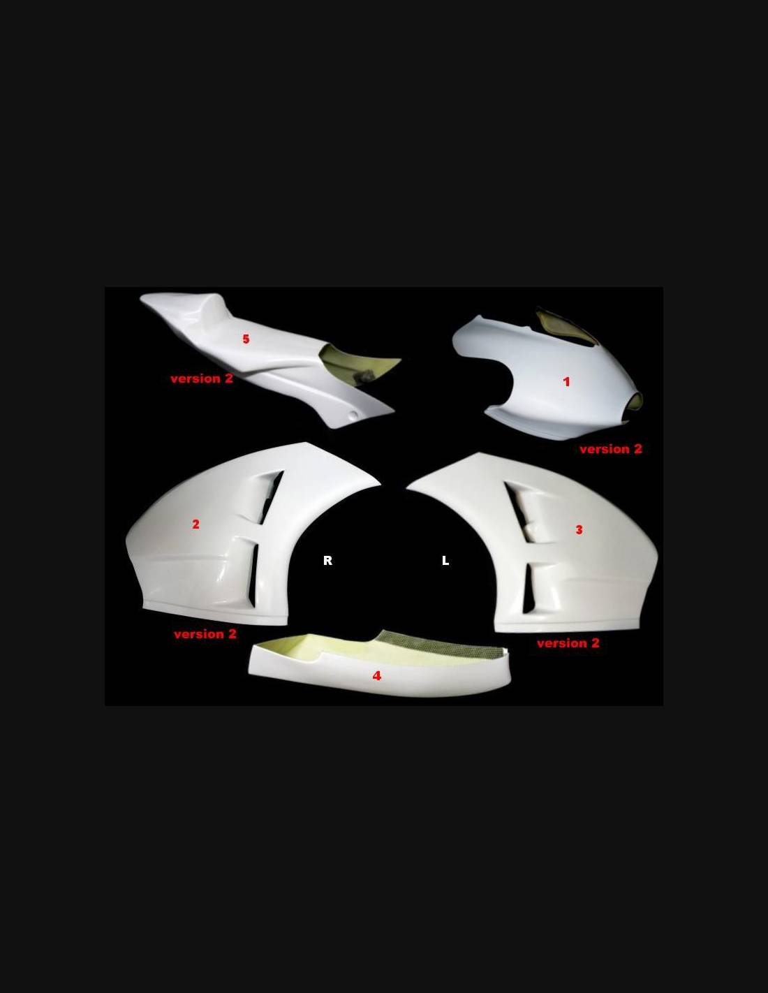 Il kit di carene comprende: cupolino, fianchi destro e sinistro, puntale a vasca e codone (il copriserbatoio non è incluso nel prezzo)