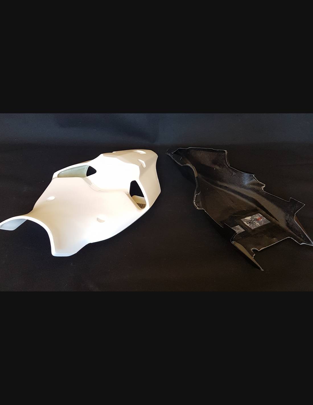 Le nostre carene racing sono realizzate in tessuto di vetroresina, rinforzate in carbonio e kevlar nei punti di maggiore sforzo. Sono omologate per i vari campionati e per l’uso amatoriale in pista grazie alla vasca chiusa raccogli liquido. Segniamo dove vanno forate, in modo da permettere al cliente finale di realizzare il foro in base alla dimensione della viteria che andrà ad utilizzare.