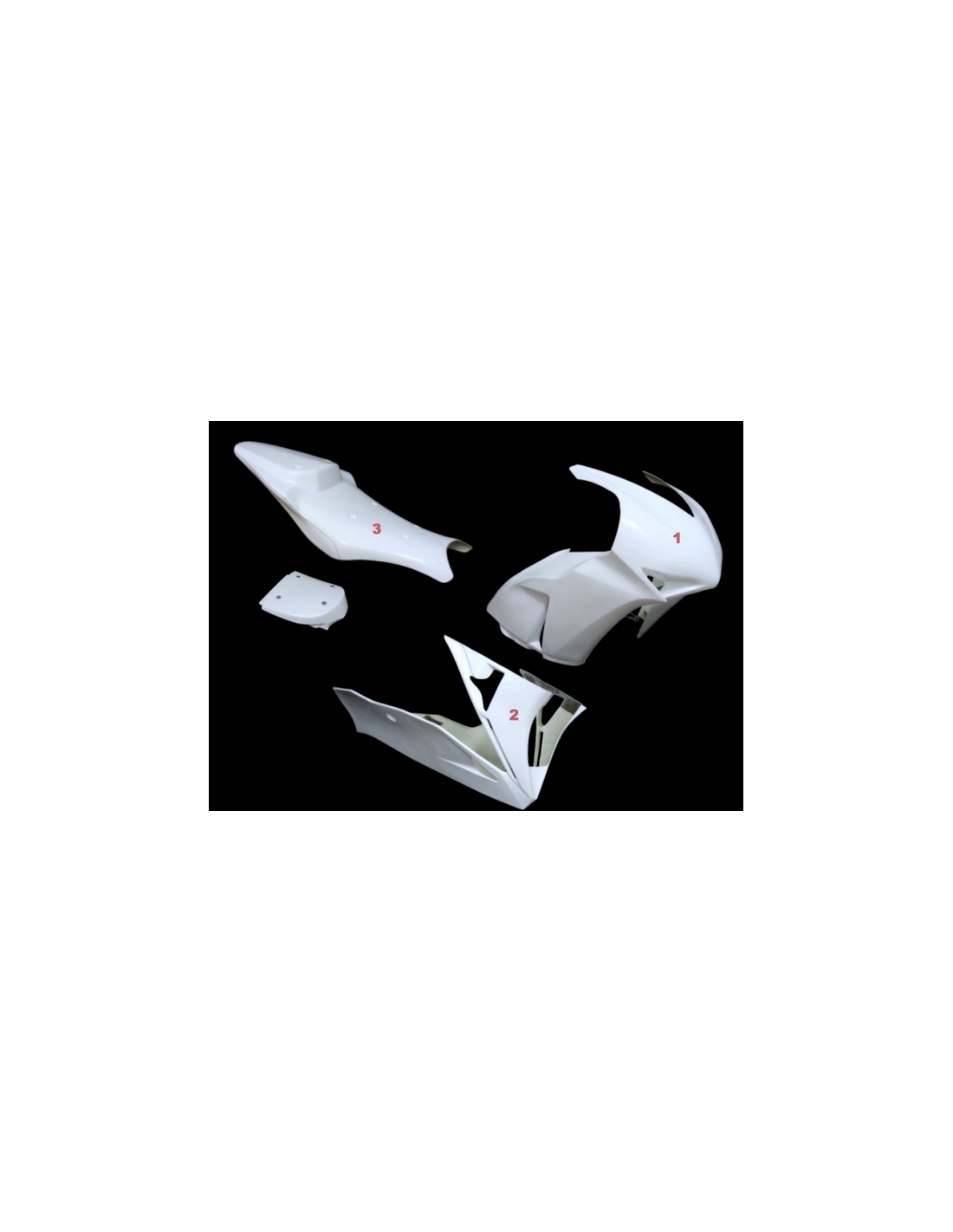 Il kit di carene comprende: cupolino, fianchi destro e sinistro, puntale a vasca e codone (il copriserbatoio non è incluso nel prezzo)