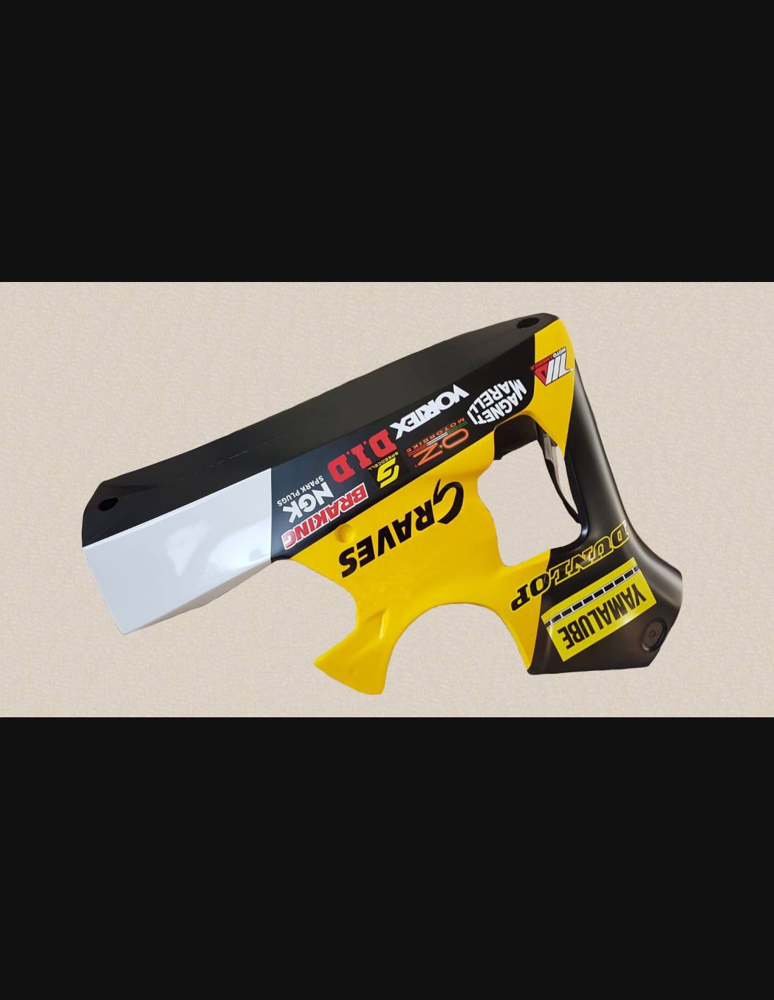 Elite: usiamo vernici di alta qualità con tonalità simili all’originale. Gli adesivi vengono stampati utilizzando plotter a 8 colori che conferiscono lucentezza e sfumature impeccabili. Tutta la grafica viene posta sotto tre strati di trasparente per mantenere nel tempo i colori brillanti della carenatura. Inoltre l’intera carena è verniciata anche all'interno.