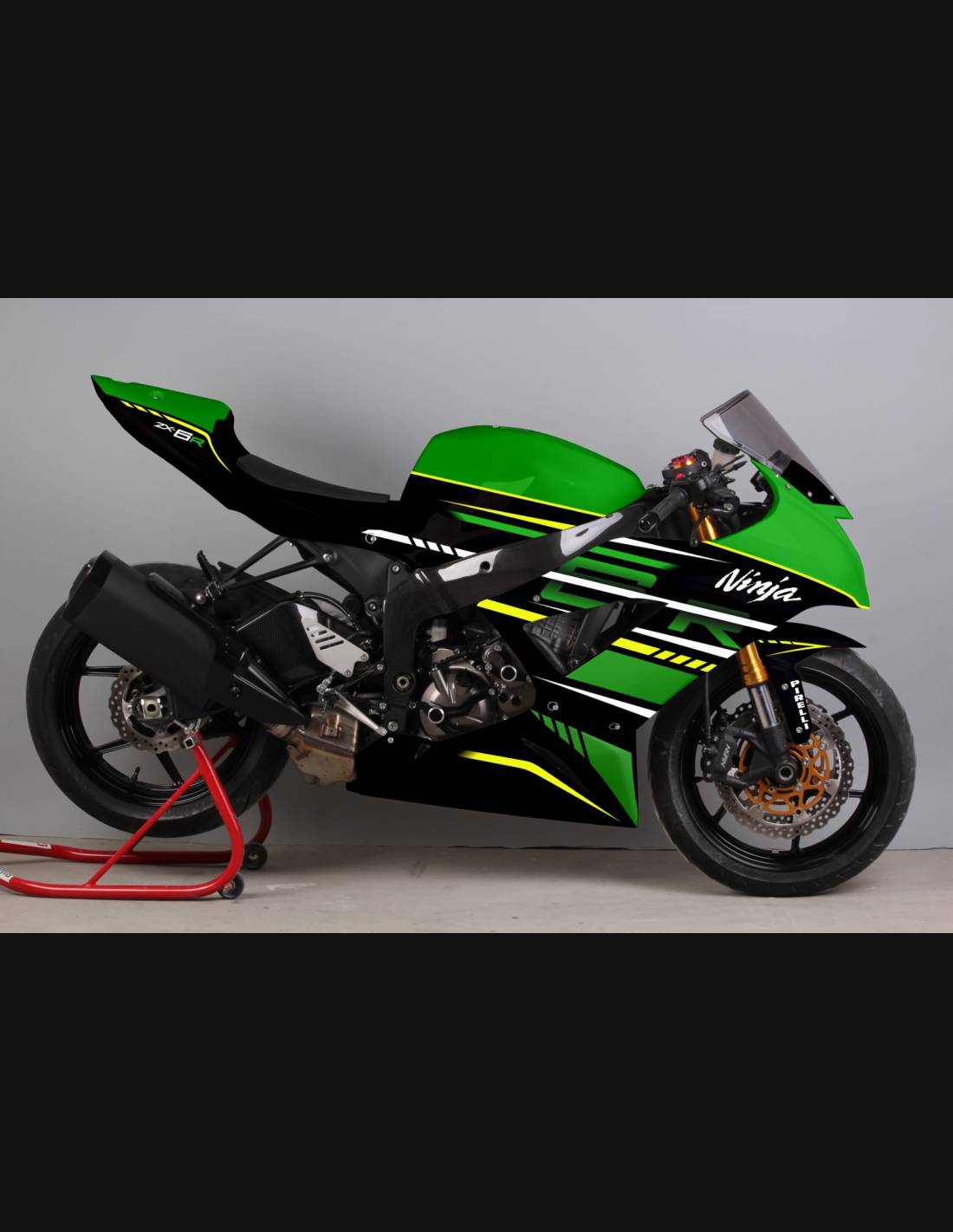 Elite: usiamo i colori compatibili con il serbatoio originale della moto (es. Verde Kawasaki). Gli adesivi vengono stampati utilizzando plotter a 8 colori che conferiscono lucentezza e sfumature impeccabili. Tutta la grafica viene posta sotto tre strati di trasparente per mantenere nel tempo i colori brillanti della carenatura. Inoltre l’intera carena è verniciata anche all'interno.
