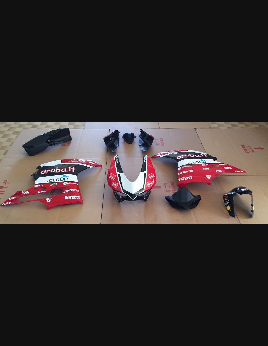 Il kit di carene comprende: cupolino, fianchi destro e sinistro, puntale a vasca, codone e parafango anteriore (il copriserbatoio non è incluso nel prezzo).