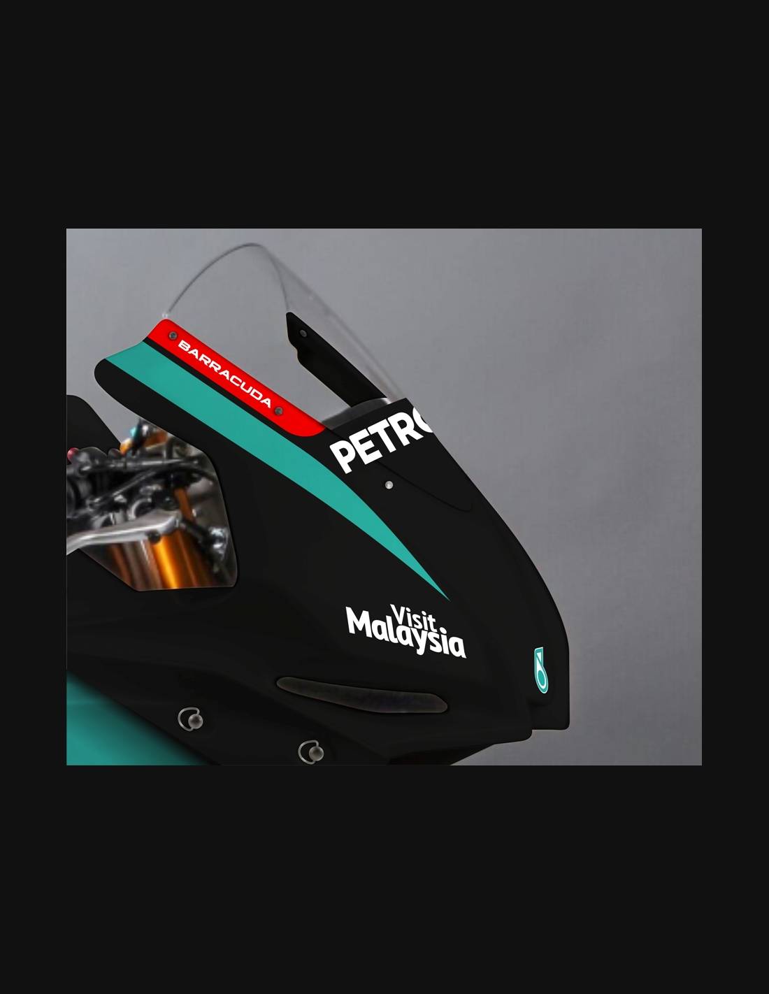 Il kit di carene comprende: cupolino, fianco destro e sinistro, vasca raccogli liquido chiusa ed omologata per la pista, codone e parafango anteriore (il copriserbatoio non è incluso nel prezzo).