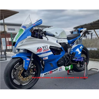 Il kit di carene comprende: cupolino, fianco destro e sinistro, vasca raccogli liquido chiusa ed omologata per la pista, codone (il copriserbatoio e parafango anteriore non è incluso nel prezzo).
