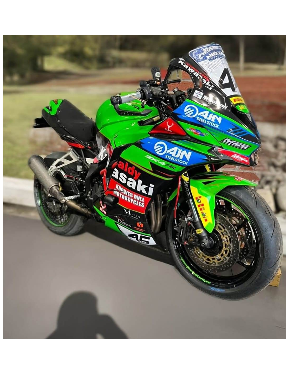 Elite: usiamo i colori compatibili con il serbatoio originale della moto (es. Verde Kawasaki). Gli adesivi vengono stampati utilizzando plotter a 8 colori che conferiscono lucentezza e sfumature impeccabili. Tutta la grafica viene posta sotto tre strati di trasparente per mantenere nel tempo i colori brillanti della carenatura. Inoltre l’intera carena è verniciata anche all'interno.