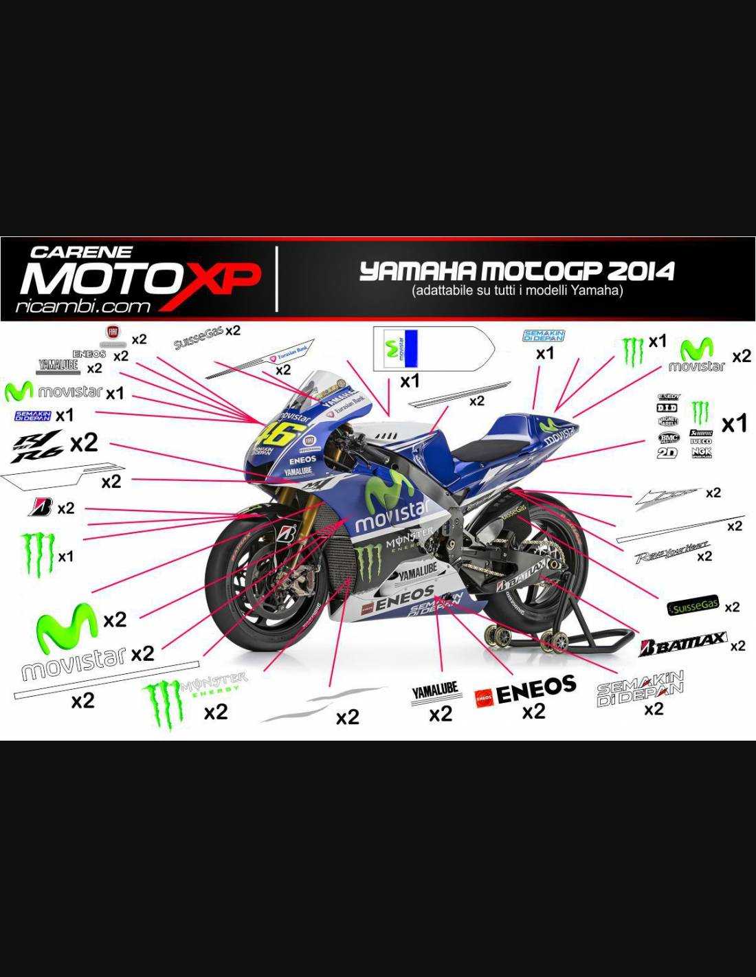 Elite: usiamo vernici di alta qualità con tonalità simili all’originale. Gli adesivi vengono stampati utilizzando plotter a 8 colori che conferiscono lucentezza e sfumature impeccabili. Tutta la grafica viene posta sotto tre strati di trasparente per mantenere nel tempo i colori brillanti della carenatura. Inoltre l’intera carena è verniciata anche all'interno.