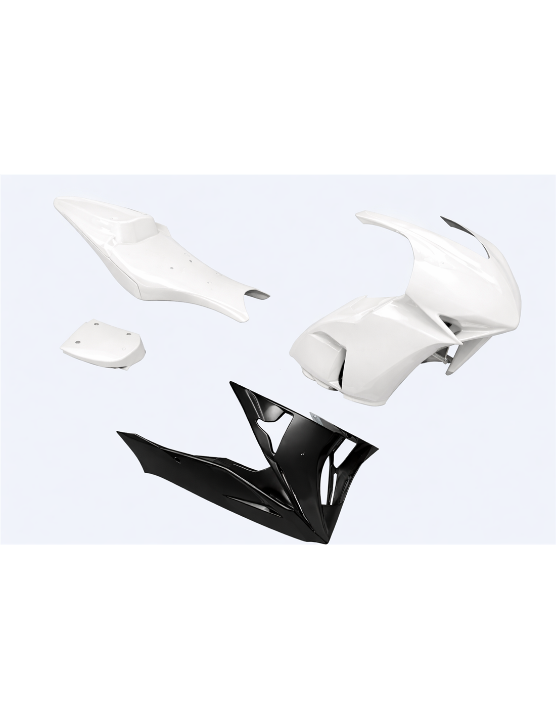 Il kit di carene comprende: cupolino, fianchi destro e sinistro, puntale a vasca, codone (il copriserbatoio non è incluso nel prezzo).
