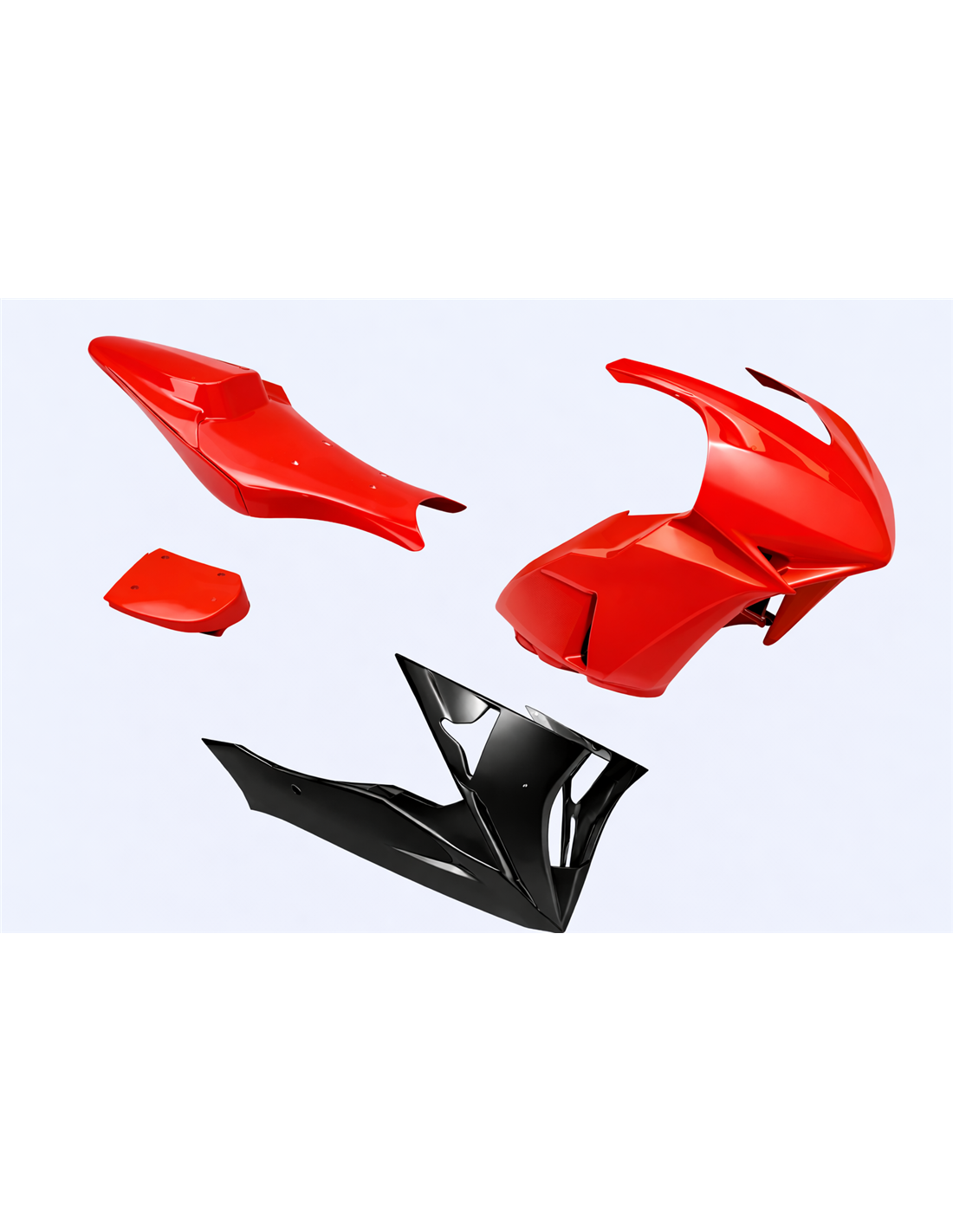 Il kit di carene comprende: cupolino, fianco destro e sinistro, vasca raccogli liquido chiusa ed omologata per la pista,codone (il copriserbatoio non è incluso nel prezzo).