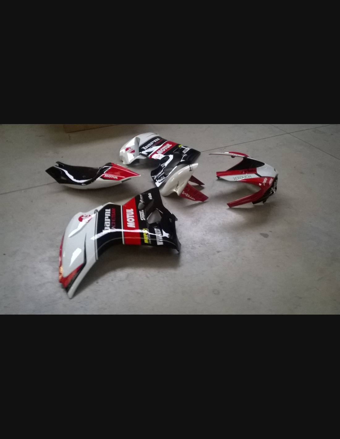 Il kit di carene comprende: cupolino, fianco destro e sinistro, vasca raccogli liquido chiusa ed omologata per la pista, codone e parafango anteriore (il copriserbatoio non è incluso nel prezzo).